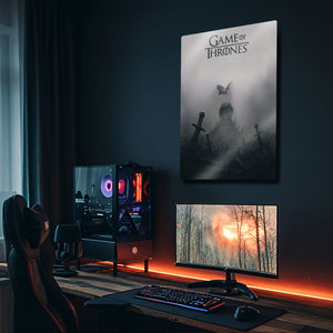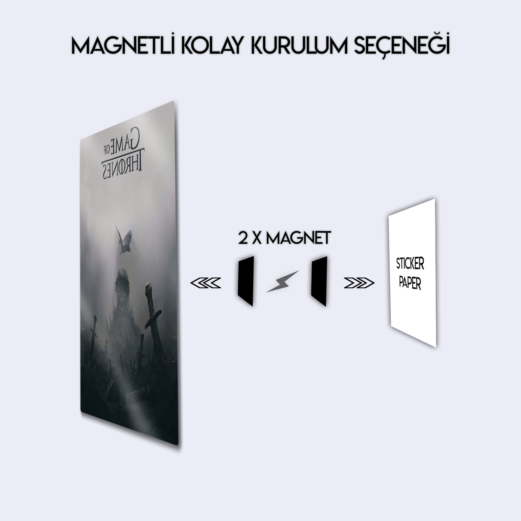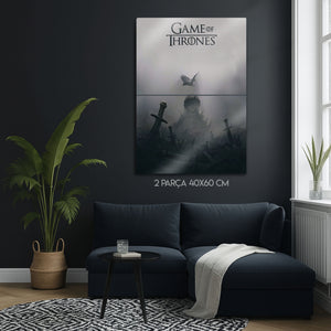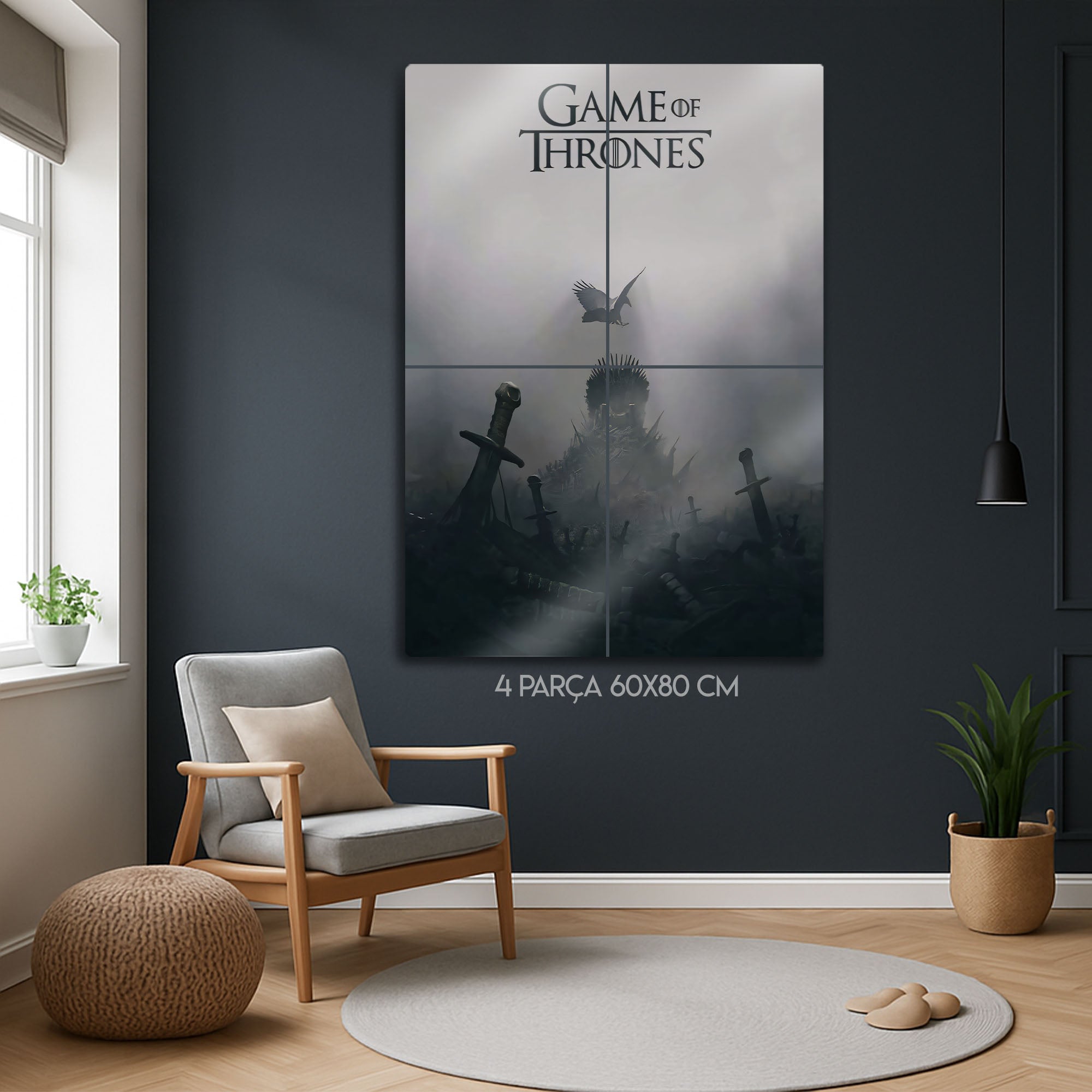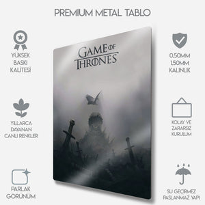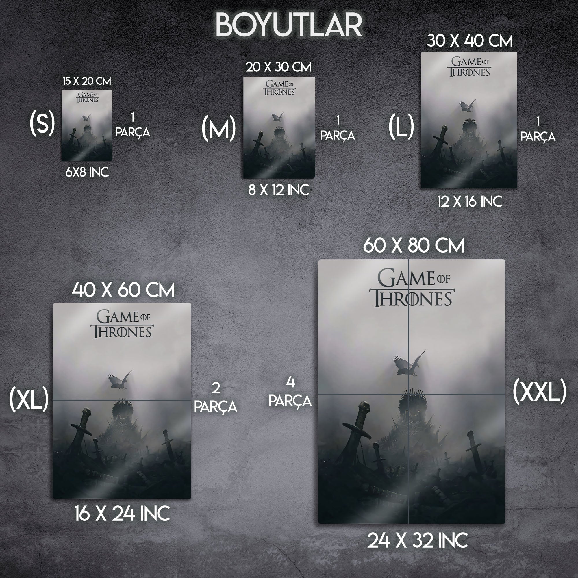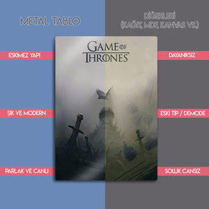 Sisler arasında yükselen taht ve çevresindeki kılıçlarla tasarlanan bu tablo, GOT hayranlarına epik bir atmosfer sunuyor. Salon, ofis, oyun odası ya da hediye için mükemmel bir seçimdir. Dayanıklı metal baskı sayesinde yıllarca ilk günkü parlaklığını korur.