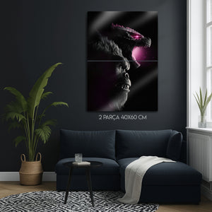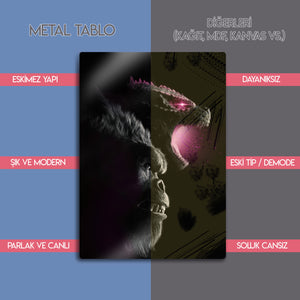 Yüksek kaliteli metal baskı sayesinde uzun yıllar boyunca renklerini kaybetmeden sergileyebileceğiniz bu tablo, film severler, koleksiyoncular ve Godzilla vs Kong hayranları için mükemmel bir seçimdir. Modern ve güçlü tasarımıyla her duvarda dikkat çeker.
