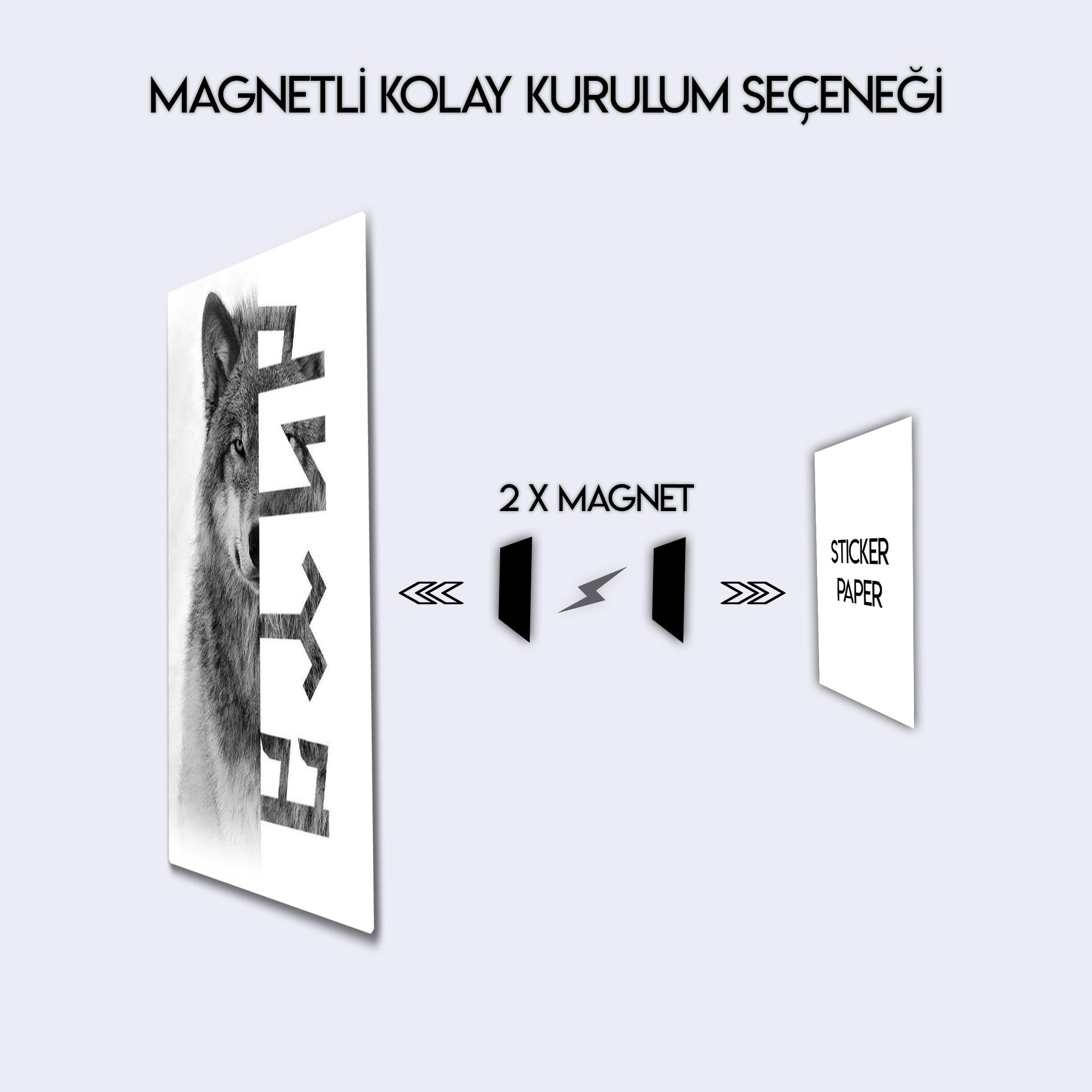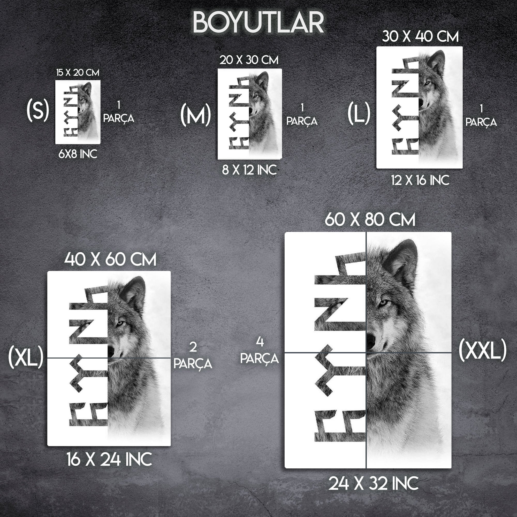 Ataların mirasını ve Türk'ün sarsılmaz ruhunu, modern ve minimalist bir tasarımla duvarlarınıza taşıyın. Bu olağanüstü metal tablo, Türk mitolojisinin en önemli sembolü olan Bozkurt'un asil portresini, en eski Türk alfabesi olan Göktürk (Orhun) alfabesiyle yazılmış "TÜRK" yazısıyla birleştirerek, "iki yüz, tek ruh" temasını işliyor.