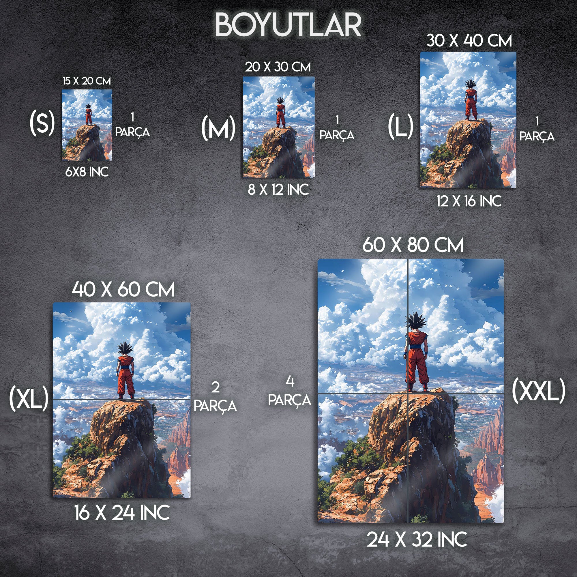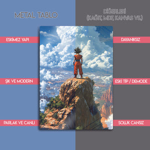 Yüksek kaliteli metal baskı sayesinde uzun ömürlü kullanım sunan bu tablo, Dragon Ball hayranları, anime koleksiyoncuları ve otaku dekorasyonu sevenler için mükemmel bir seçimdir.