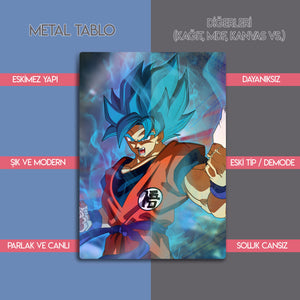 Yüksek kaliteli metal baskı sayesinde uzun ömürlü kullanım sunan bu tablo, Dragon Ball hayranları, anime koleksiyoncuları ve otaku dekorasyonu sevenler için mükemmel bir seçimdir.