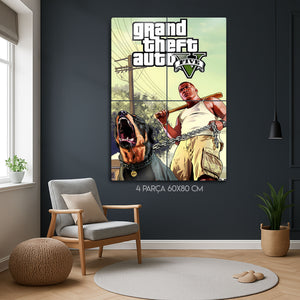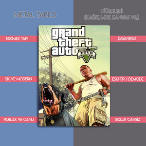 Dayanıklı metal yüzey ve canlı renkleri sayesinde uzun yıllar ilk günkü gibi kalacak olan bu tablo, özellikle gaming room, ofis, genç odası ve hediye için mükemmel bir seçimdir. Franklin ve sadık köpeği Chop’un yer aldığı bu sahne, GTA serisinin unutulmaz anlarını evinize taşıyor.