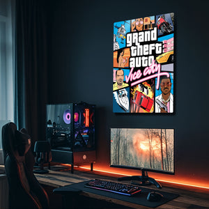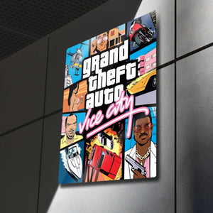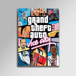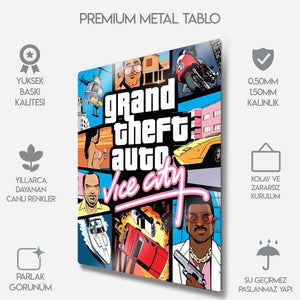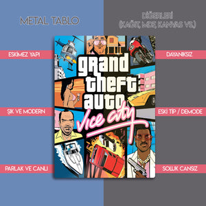 GTA Vice City Poster Tasarım Retro Oyun Odası Dekoru - Metal Tablo