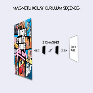 Efsanevi Grand Theft Auto: Vice City oyununun ikonik tarzını evinize taşıyın! Neon ışıkları, 80’lerin retro atmosferi ve Vice City’nin unutulmaz karakterlerini ve Tommy Vercetti'yi yansıtan bu özel metal tablo, oyun severler için mükemmel bir dekorasyon ürünüdür. Yüksek kaliteli baskısı ve dayanıklı metal yüzeyiyle uzun yıllar ilk günkü canlılığını korur. Oyun odaları, genç odaları veya modern dekorasyon için ideal bir seçimdir.