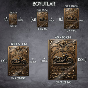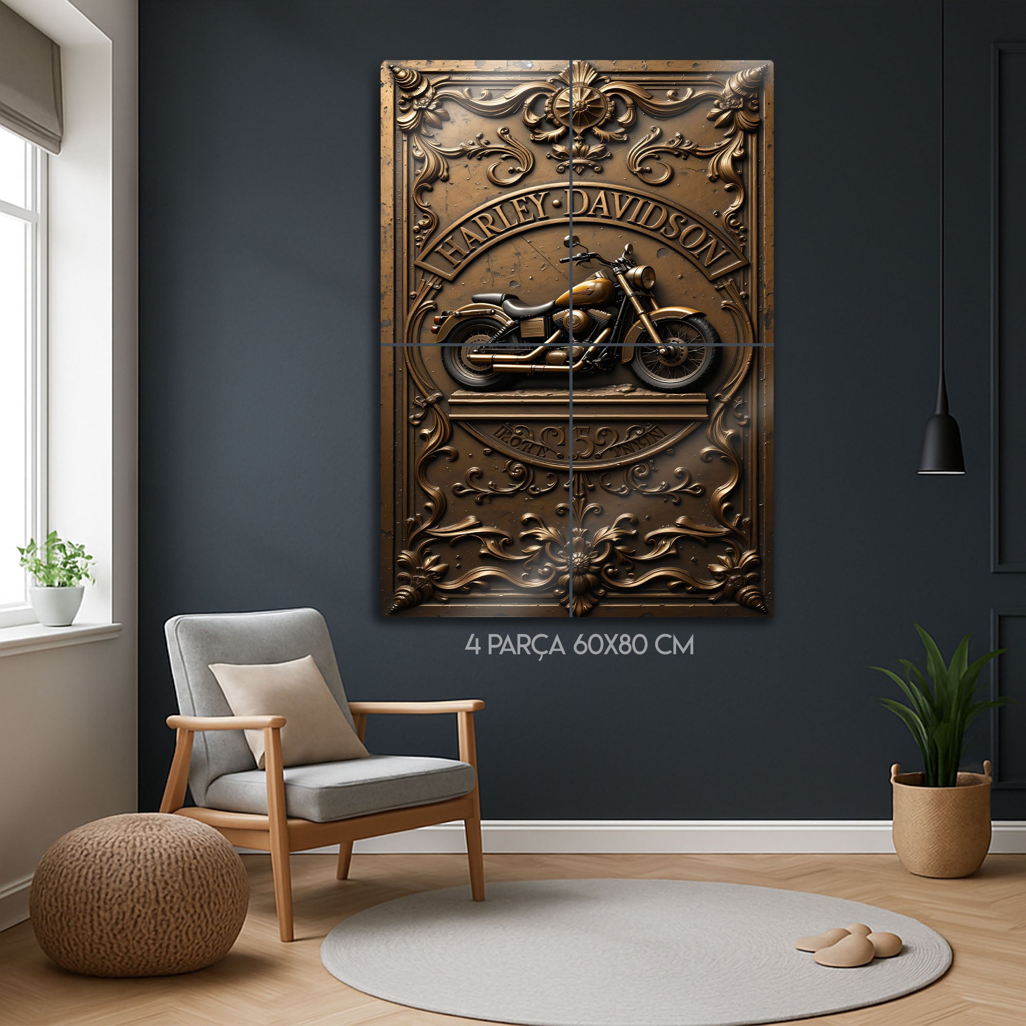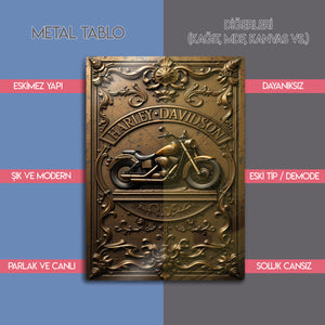 Efsanevi motosiklet markası Harley Davidson’ın ruhunu yansıtan bu özel retro metal tablo, motor tutkunlarının koleksiyonlarında mutlaka olması gereken bir parçadır. Vintage tarzda kabartmalı desenleri ve bronz tonlarındaki estetik tasarımıyla hem nostaljik hem de modern dekorasyonlara şıklık katar. Dayanıklı metal yüzeyi sayesinde uzun ömürlü kullanım sunar. Garaj, ofis, salon, kafe ve bar dekorasyonu için mükemmel bir tercihtir. Harley Davidson kültürünü yaşatmak ve duvarlarınıza özgürlük ruhunu katmak isteyenler için eşsiz bir koleksiyon ürünüdür. Ayrıca motosiklet severler için harika bir hediye seçeneğidir.