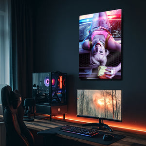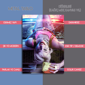 DC evreninin en sevilen anti-kahramanlarından Harley Quinn, enerjik ve çılgın kişiliğiyle bu özel metal tabloda hayat buluyor. Canlı pembe ve mavi saç tonları, ikonik "Daddy's Lil Monster" tişörtü ve dikkat çekici detaylarıyla Harley Quinn hayranları için mükemmel bir koleksiyon parçasıdır. Dayanıklı metal yüzeyi sayesinde uzun ömürlü kullanım sunar ve salon, ofis, genç odası veya kafe dekorasyonunda modern bir atmosfer yaratır. DC Comics ve Suicide Squad hayranları için eşsiz bir hediye alternatifi olarak da öne çıkar.