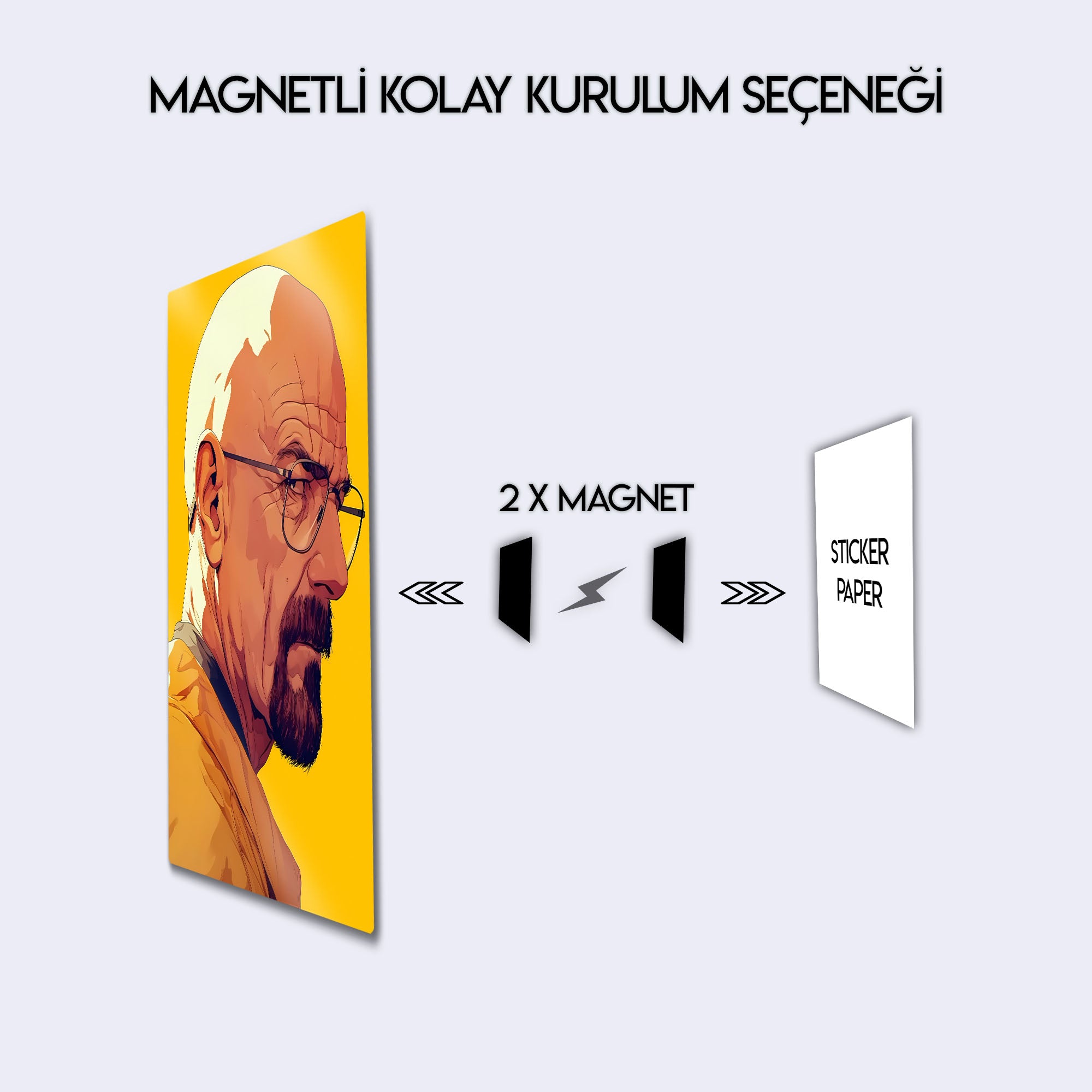 Televizyon tarihinin en efsanevi karakterlerinden Walter White (Heisenberg), bu özel metal tablo ile duvarlarınıza geliyor. İkonik bakışları ve unutulmaz tarzıyla Breaking Bad dizisinin ruhunu yansıtan bu tasarım, dizi hayranları için eşsiz bir koleksiyon parçasıdır. Yüksek baskı kalitesi ve dayanıklı metal yüzeyi sayesinde uzun yıllar dekoratif şıklığını korur. Salon, genç odası, ofis veya koleksiyon köşeleri için ideal bir seçimdir. Breaking Bad tutkunlarına hediye olarak da mükemmel bir tercihtir.