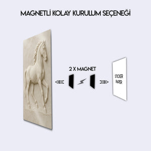Dayanıklı metal yüzeyi ve özenle işlenmiş at figürü, dekorasyonunuza hem modern hem de klasik bir şıklık katar. Salon, ofis, çalışma odası veya giriş alanlarında sergilendiğinde bulunduğu ortama özgün bir karakter kazandırır. Atın temsil ettiği zarafet ve özgürlük, duvarlarınıza sadece görsel değil, anlamlı bir değer de katacaktır.