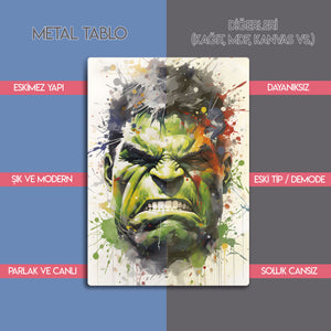 Hulk Tasarım Renkli Marvel Duvar Dekoru - Metal Tablo