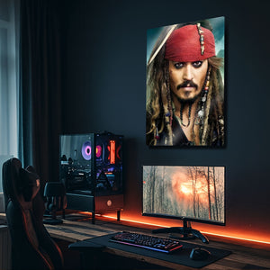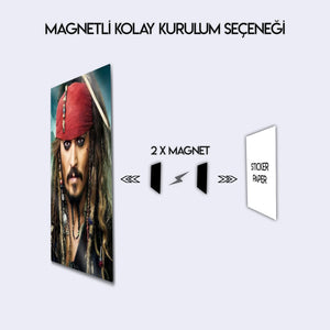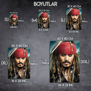 Efsanevi Kaptan Jack Sparrow'un karizmatik ve asi ruhunu duvarlarınıza taşıyın! Karayip Korsanları serisinin unutulmaz karakteri Johnny Depp'in hayat verdiği Jack Sparrow'un bu ikonik portresi, yüksek kaliteli metal malzeme üzerine canlı ve kalıcı renklerle işlendi.