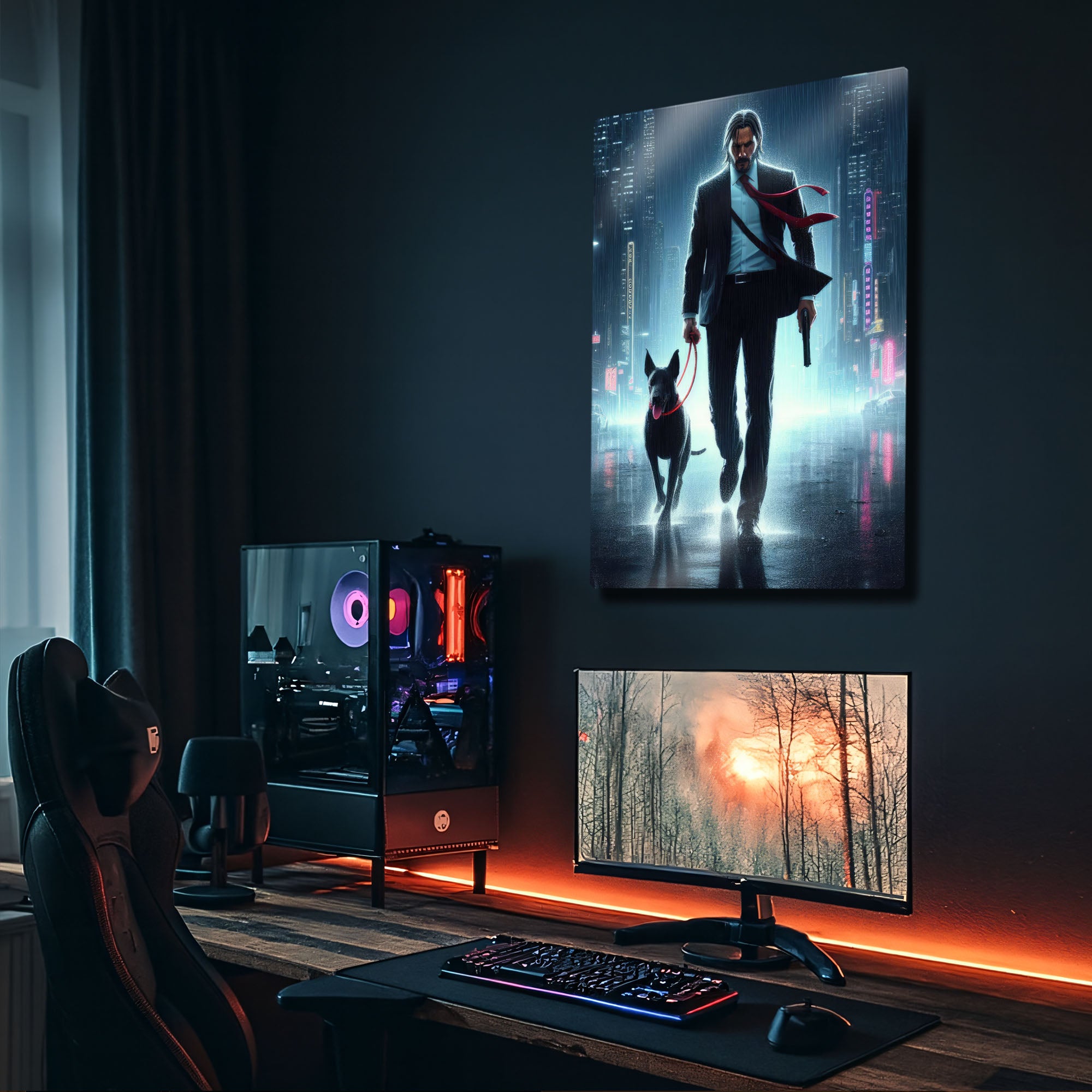 İkonik Sahne: John Wick'in karakterini mükemmel bir şekilde özetleyen, atmosferik ve güçlü bir tasarım.