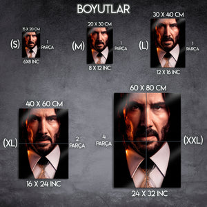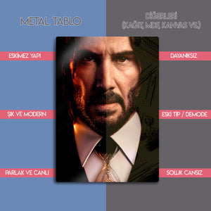 Bu sinematik metal tablo, John Wick evreninin o karanlık ve etkileyici atmosferini yaşam alanınıza taşıyor. Modern ve karizmatik duruşuyla ofis, salon, sinema odası veya erkeklere özel "man cave" alanları için vazgeçilmez bir dekorasyon parçası olacak. Canlı renkleri ve dayanıklı yapısı ile bu tablo, koleksiyonunuzun en özel parçası olmaya aday.