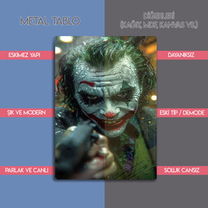 Koleksiyonluk Parça: Yüksek kaliteli metal malzeme üzerine işlenmiş, her Joker hayranının koleksiyonunda isteyeceği sanatsal bir yorum.