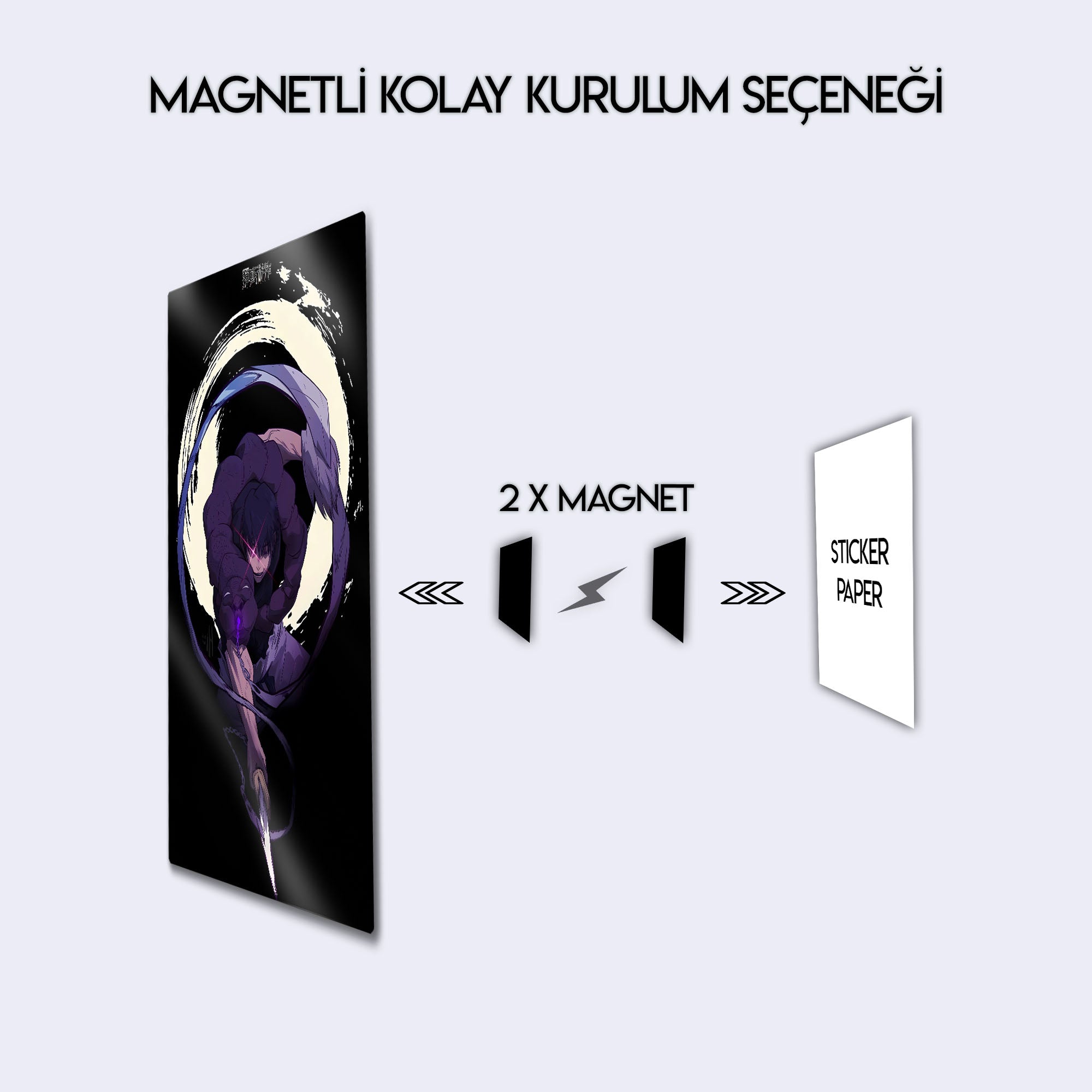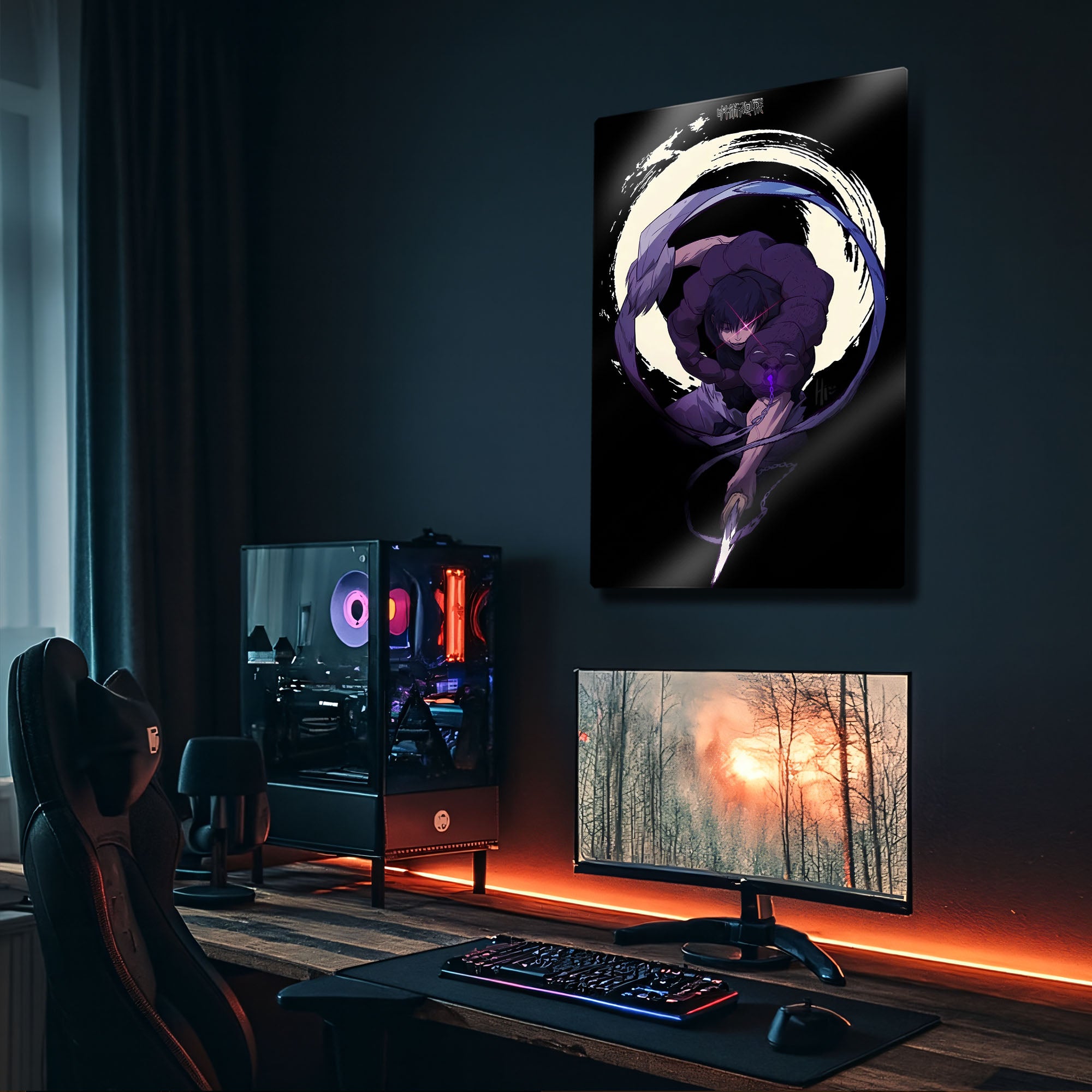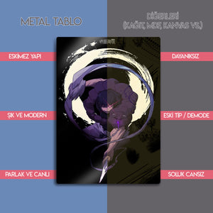 Bu eser, her Jujutsu Kaisen hayranının koleksiyonunda olması gereken, hem karanlık hem de son derece stil sahibi bir parçadır. Metalin derin siyah zemini, karakterin mor aurasını ve fırça darbesi efektini mükemmel bir şekilde öne çıkarır. Oyun odaları, "man cave"ler, genç odaları veya modern yaşam alanlarına anında bir gizem, güç ve asi bir atmosfer katacaktır.