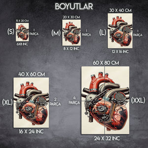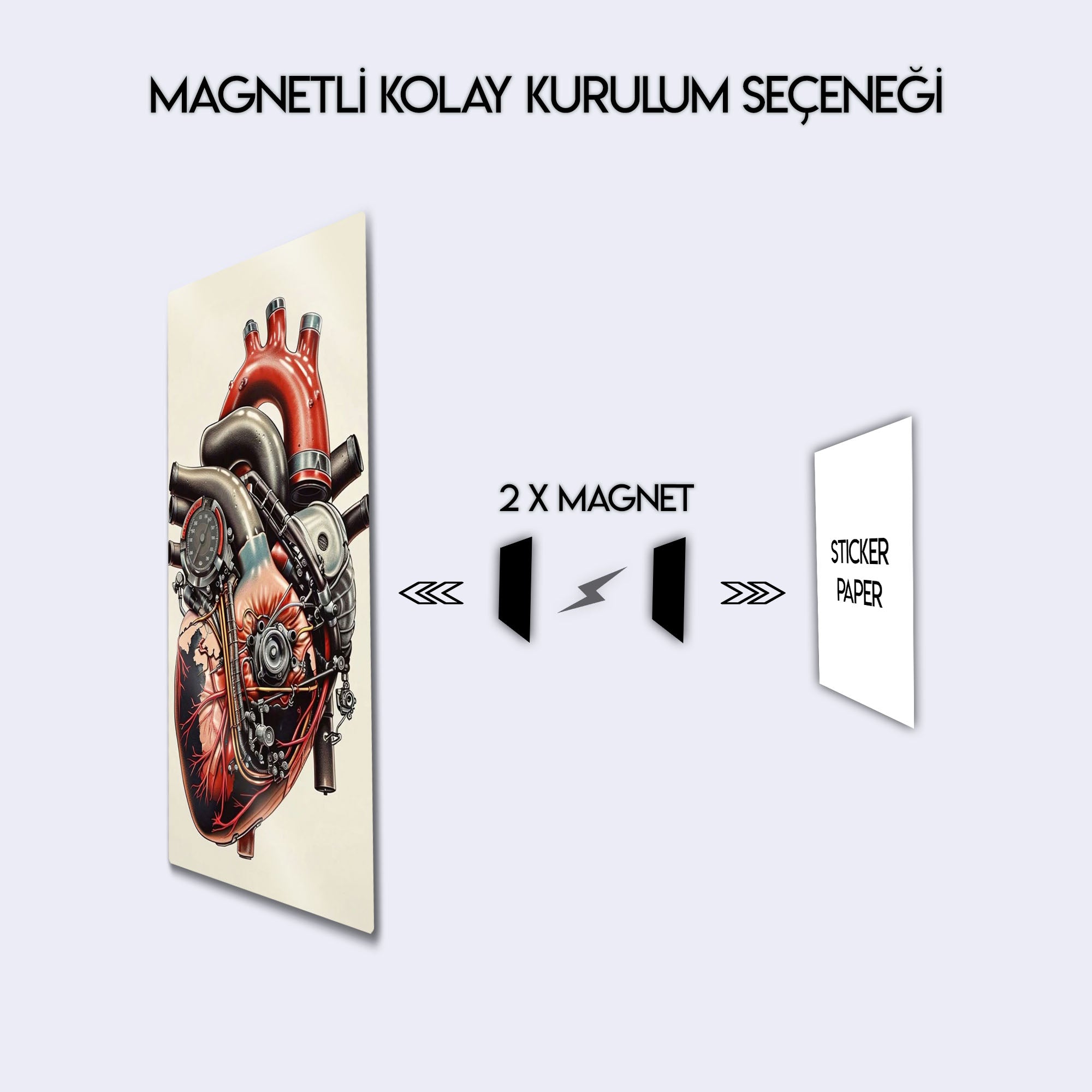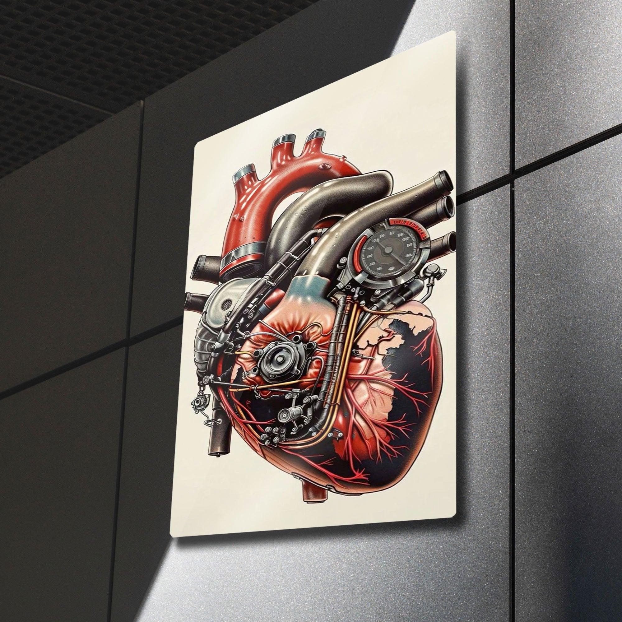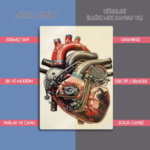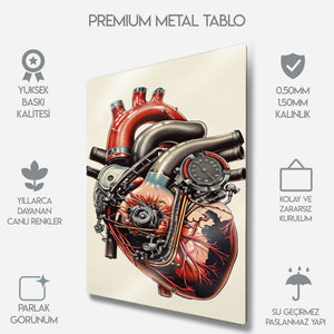 Yaşam Motoru: Detaylı Biyomekanik Kalp İllüstrasyonu - Metal Tablo