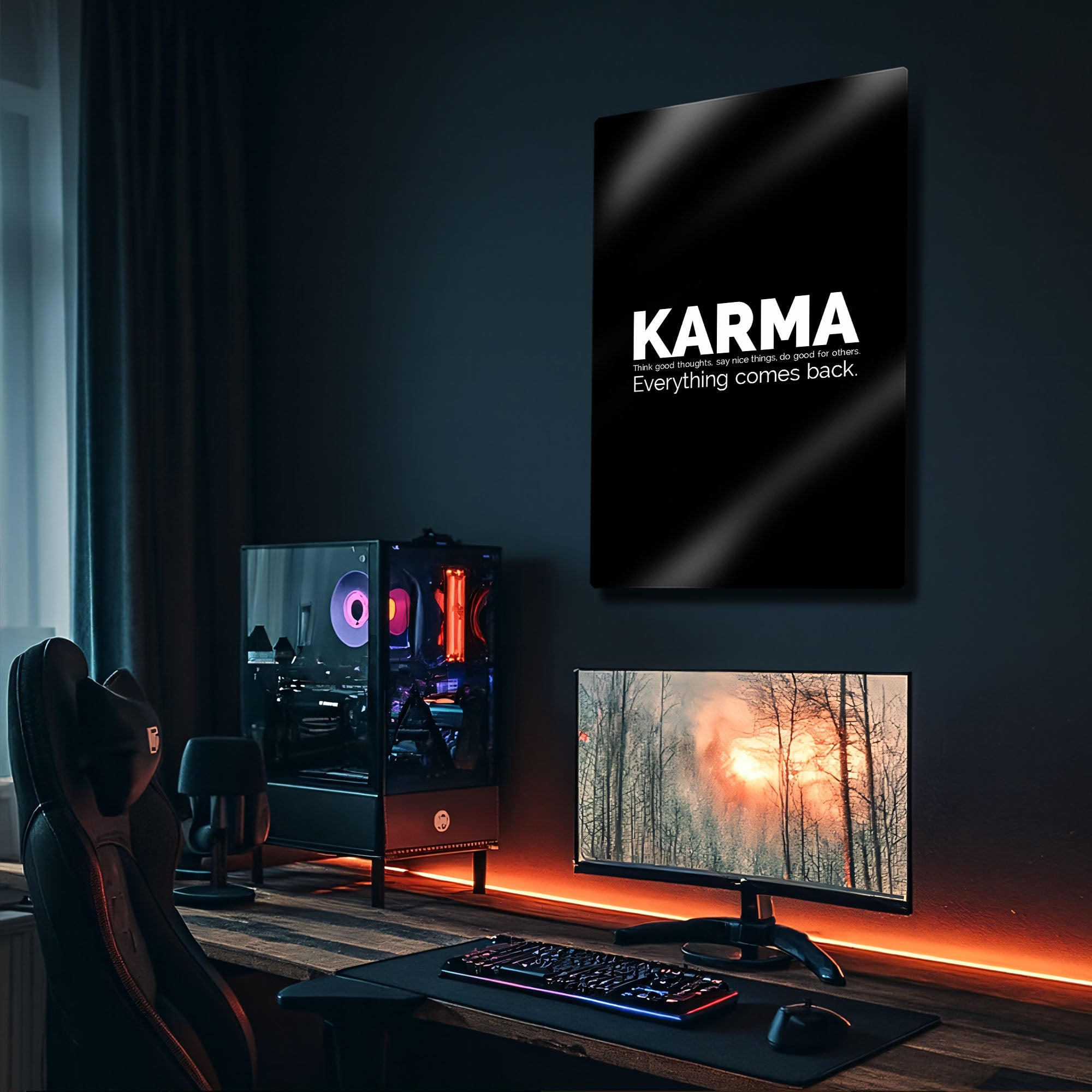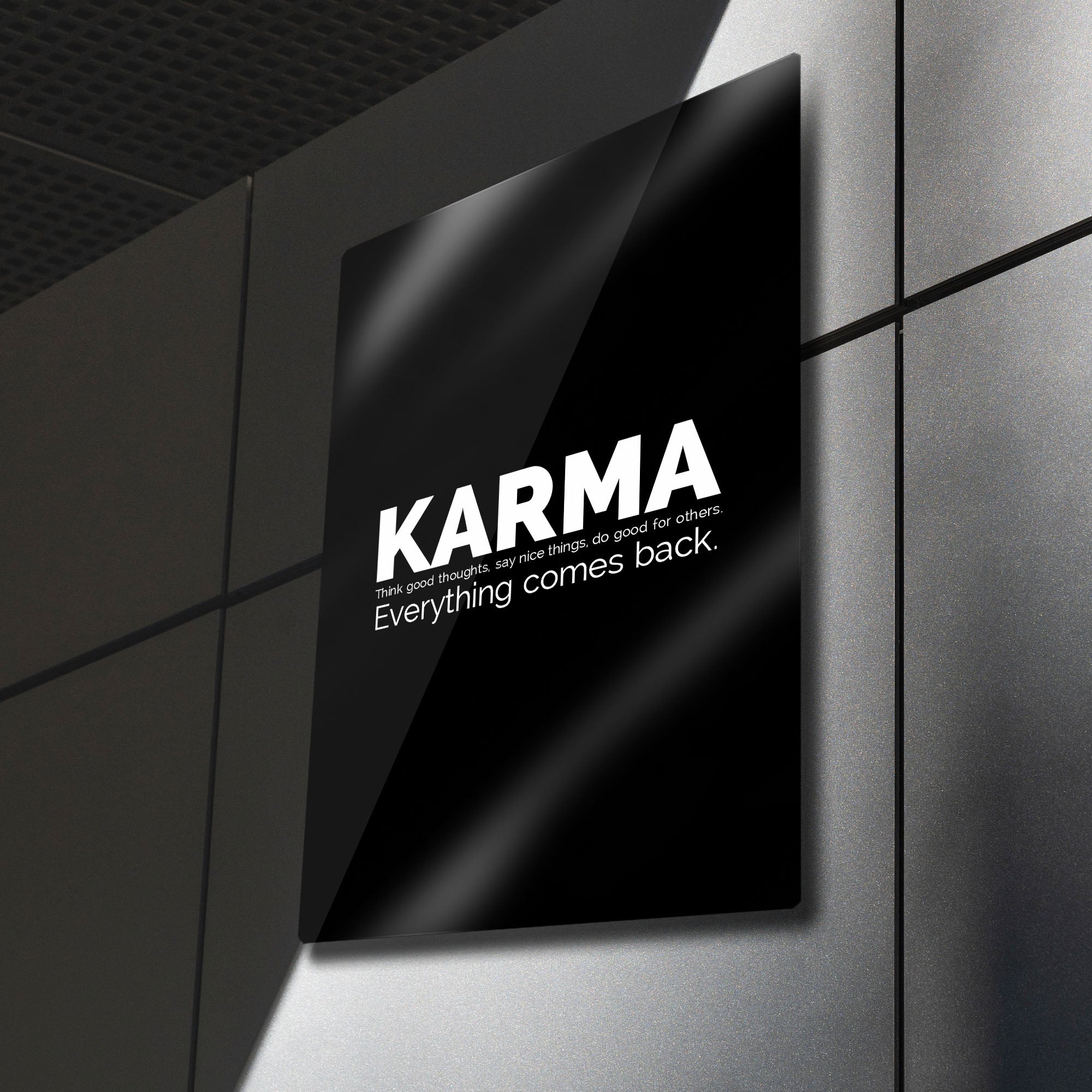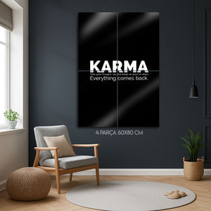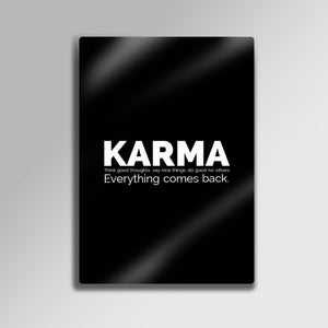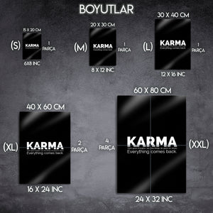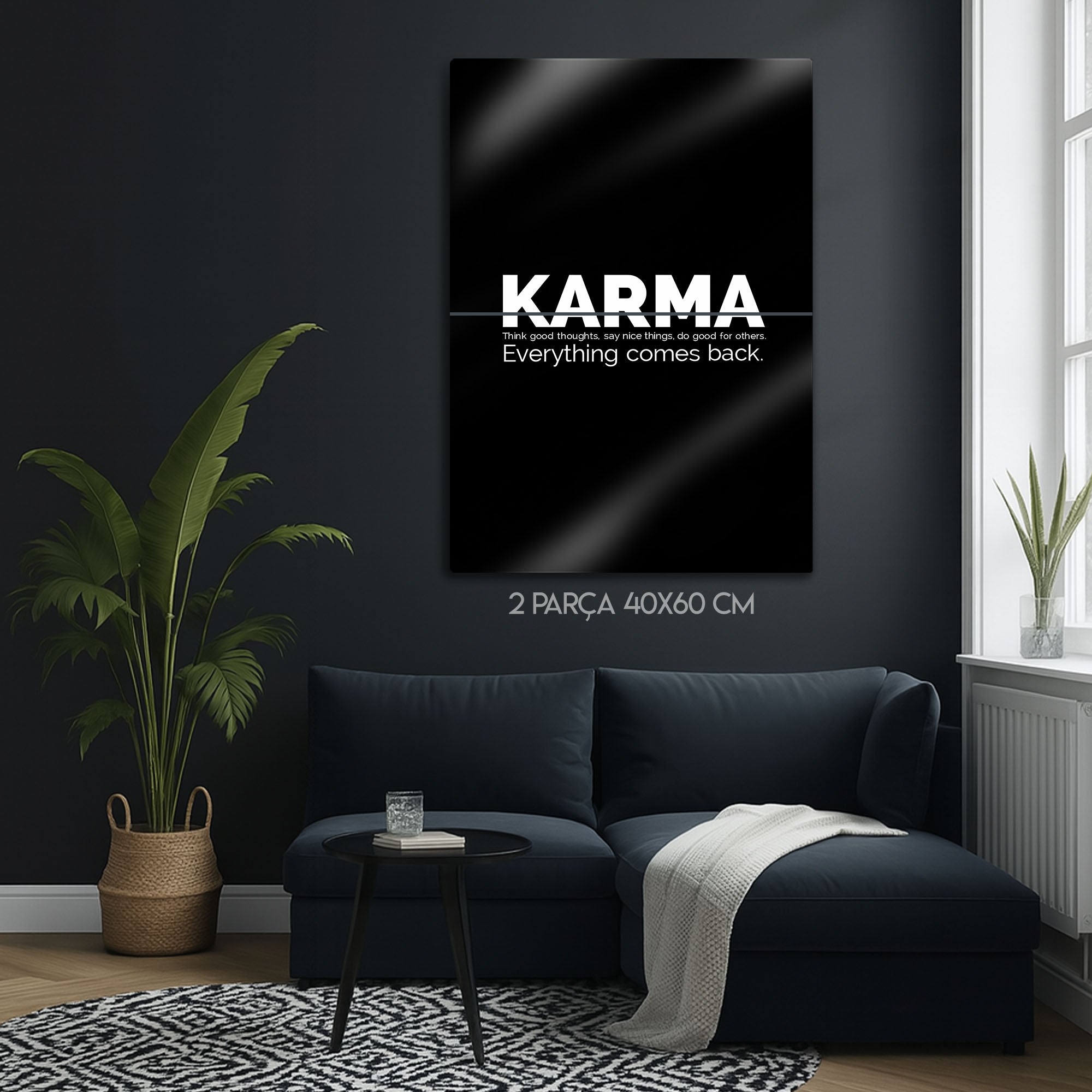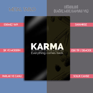 Ne ekersen onu biçersin... Hayatın bu temel felsefesini, modern ve minimalist bir tasarımla duvarlarınıza taşıyın. Bu şık metal tablo, "KARMA" kelimesinin gücünü, "İyi şeyler düşün, güzel şeyler söyle, başkaları için iyi şeyler yap. Her şey geri döner." anlamındaki ilham verici mesajla birleştiriyor.