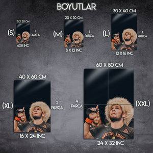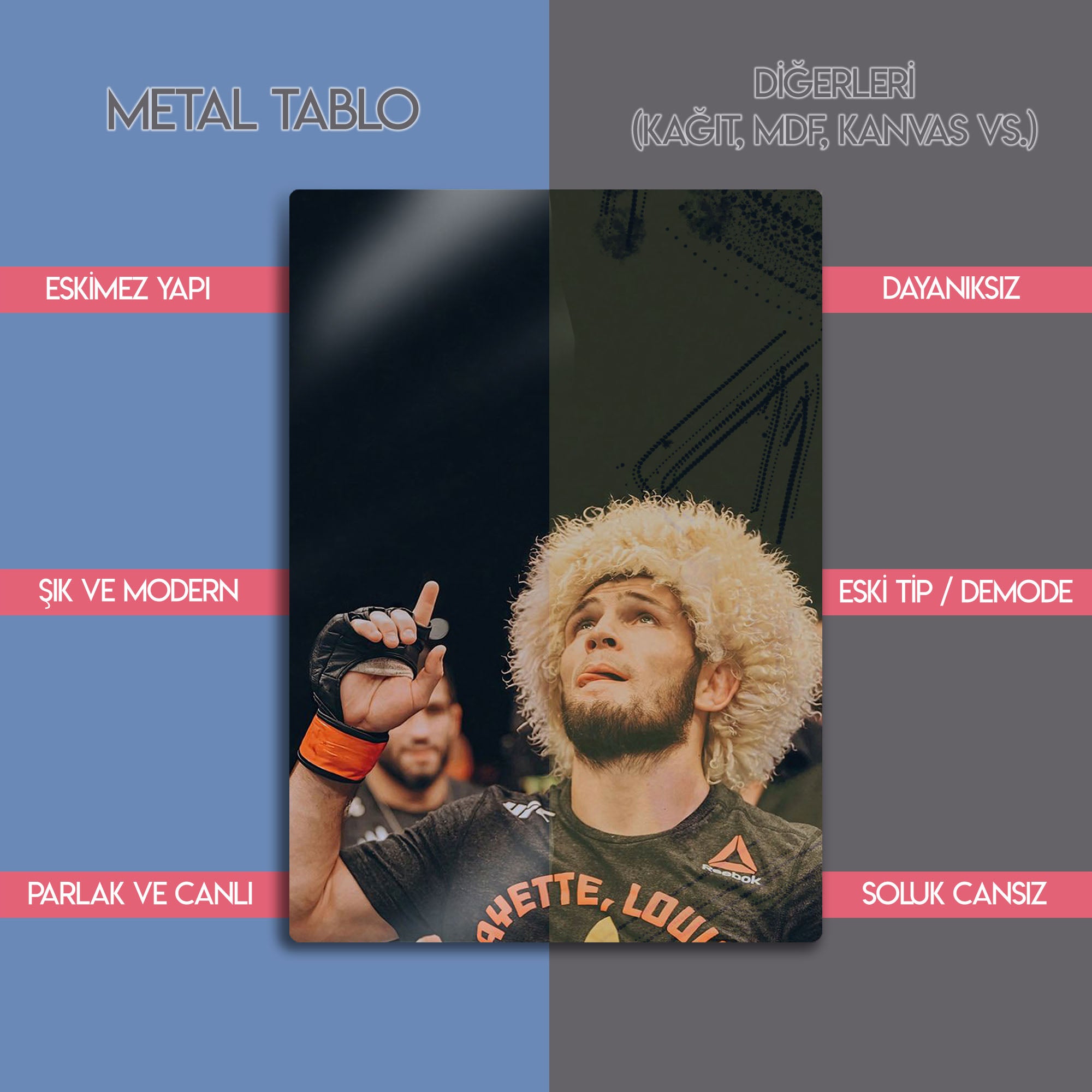 Dövüş sporları ve MMA tutkunları için bir başyapıt niteliğindeki bu eser, spor odanıza, "man cave"inize, ofisinize veya spor salonunuza anında bir şampiyonluk ruhu ve motivasyon katacaktır. Yüksek kaliteli metal malzeme üzerine işlenen bu ilham verici portre, bir efsanenin mirasını ve kararlılığını her gün size hatırlatacak.