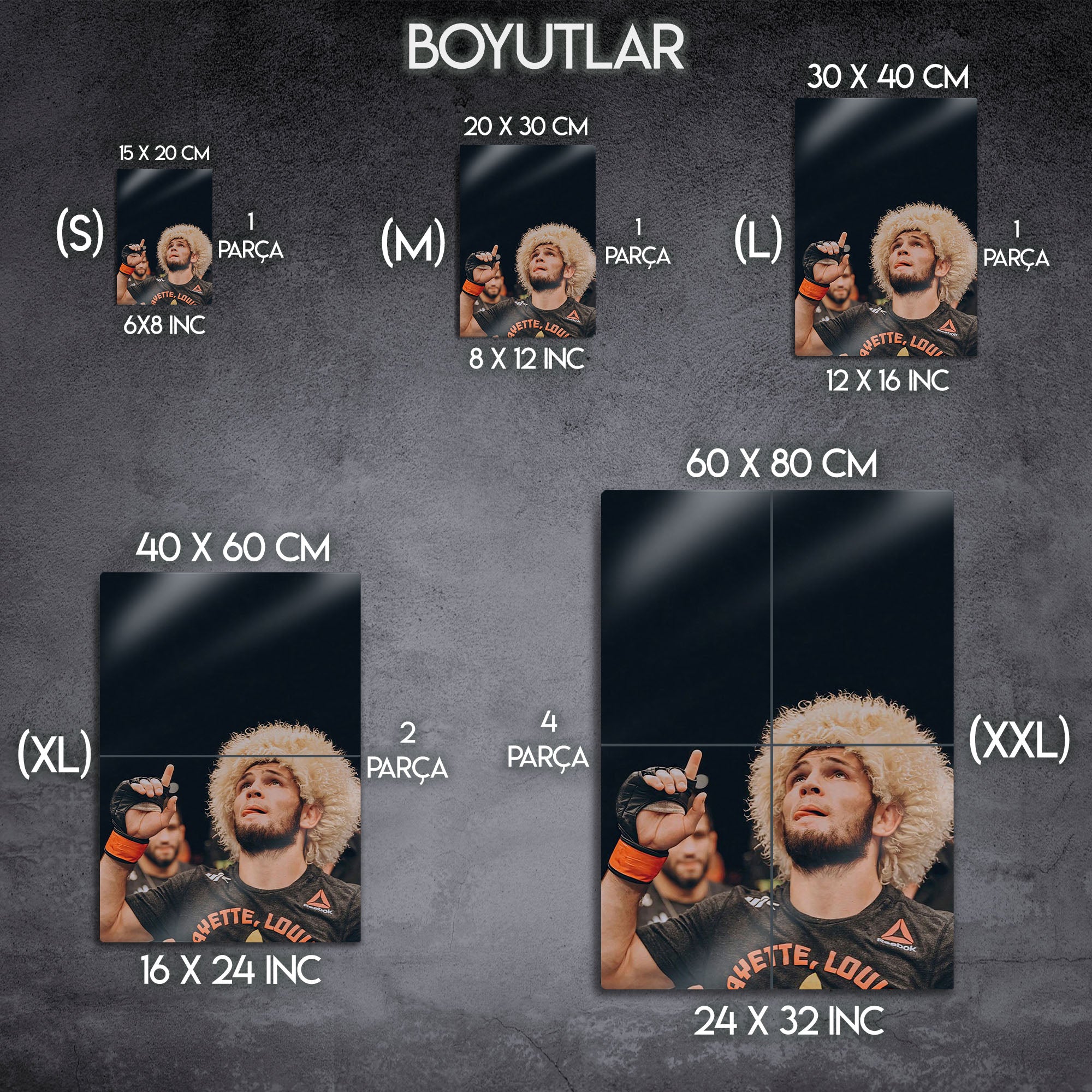 Yüksek Kalite Baskı: Khabib'in kararlı ifadesini ve her detayı keskin bir şekilde yansıtan premium fotoğraf kalitesi.