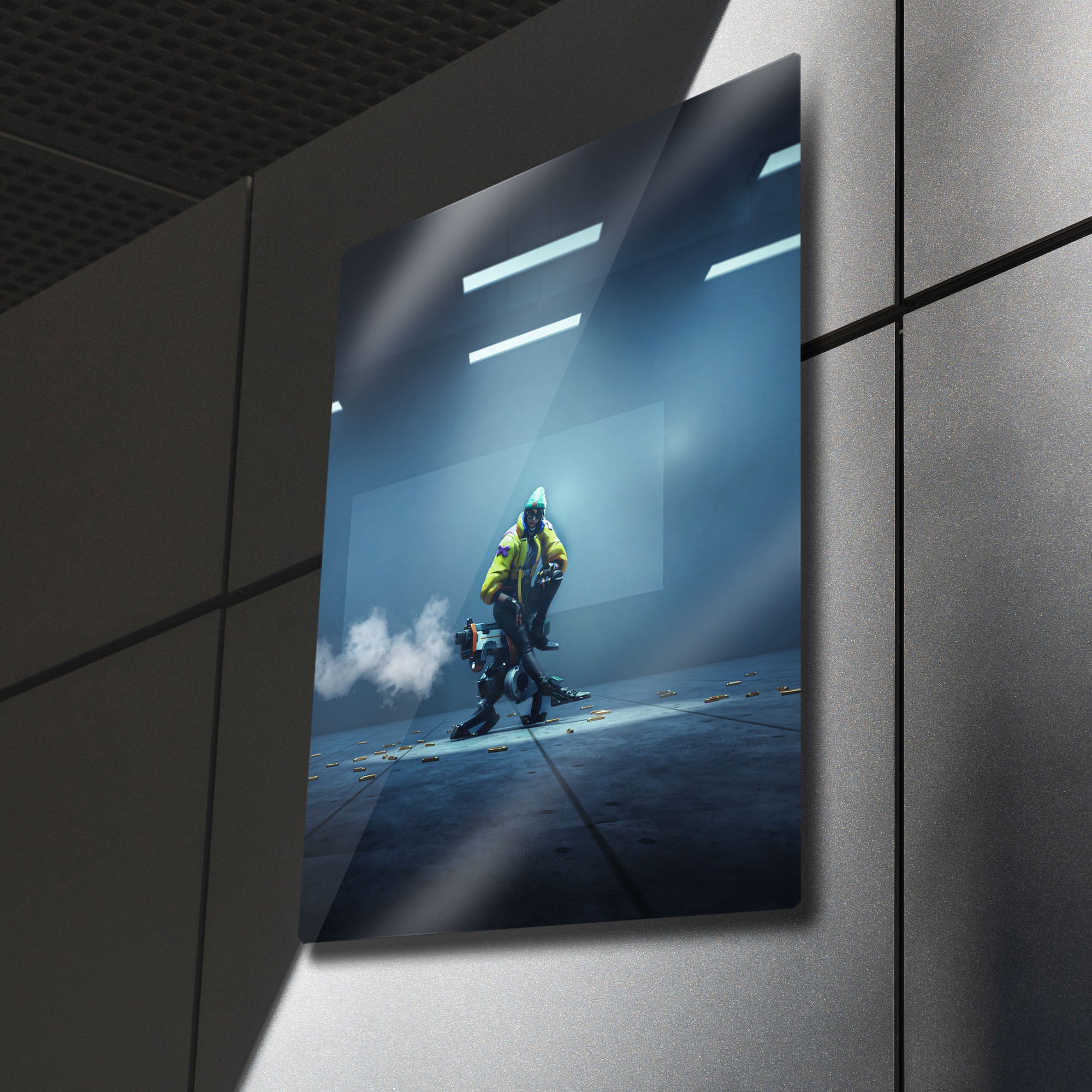 'Ah, to be young and adored... and brilliant!'' ("Ah, genç, tapılası... ve dahi olmak!") Valorant'ın dahi mühendisi, Alman mucit Killjoy'un o havalı ve kendinden emin duruşunu duvarlarınıza taşıyın! Bu özel tasarım metal tablo, Killjoy'u, imza yeteneği olan tareti üzerinde rahat bir şekilde otururken, bir çatışmanın hemen ardından kalan boş kovanların ortasında, minimalist ve sinematik bir kompozisyonla sunuyor.