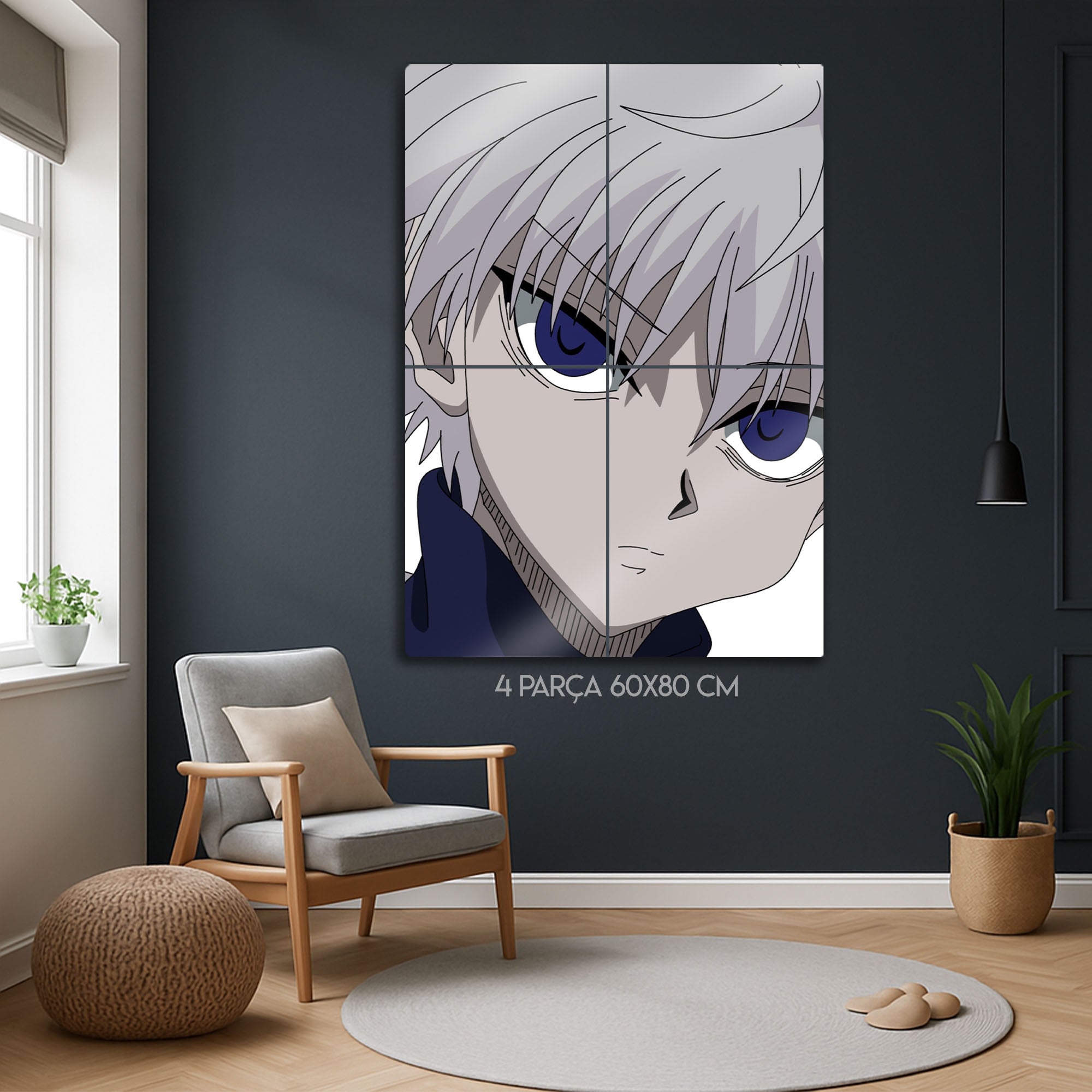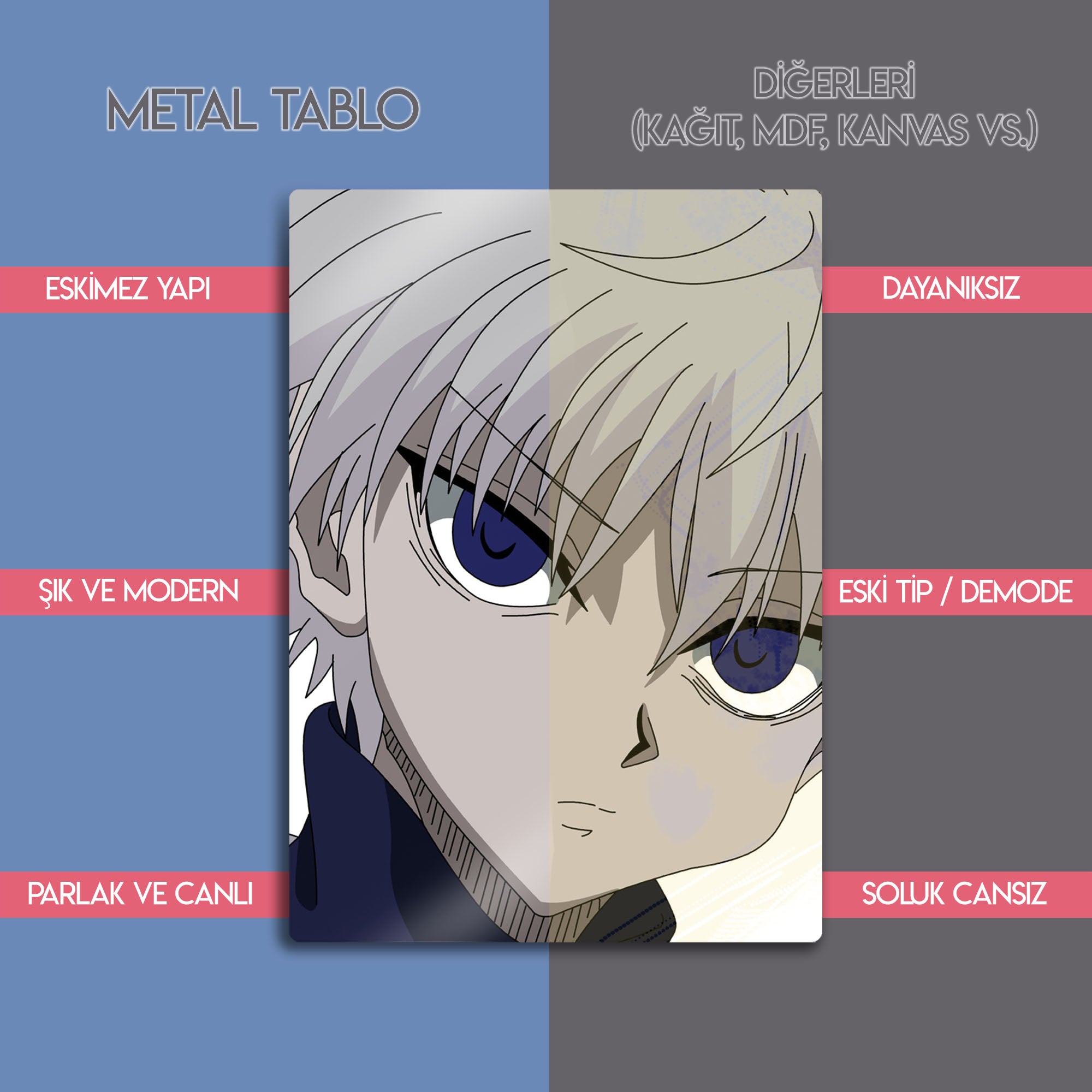 Dekorhane kalitesiyle sunulan bu şık Killua metal tablosu ile anime sevginizi en modern haliyle gösterin!