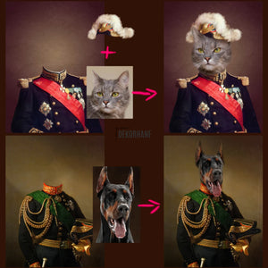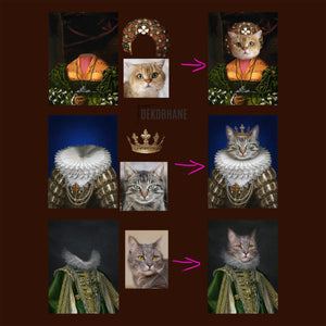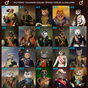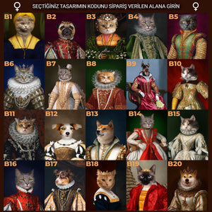 Siz sadece evcil hayvanınızın (kedi, köpek, kuş vb.) en güzel fotoğrafını bize gönderin, profesyonel sanatçılarımız onu bu muhteşem tarihi kostümlerle birleştirerek, evinizin en değerli sanat eseri haline getirsin. Bu eser, sadece bir hediye değil, aynı zamanda dostunuza olan sevginizin en eğlenceli ve en sanatsal ifadesidir.