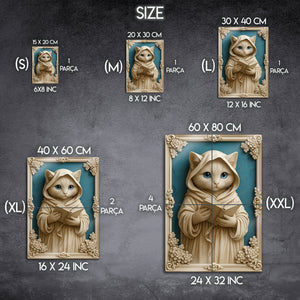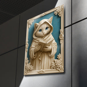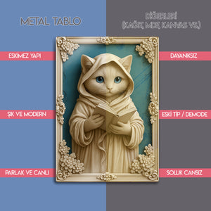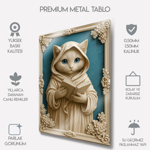 Kitap Okuyan Kedi Figürlü 3D - Metal Tablo