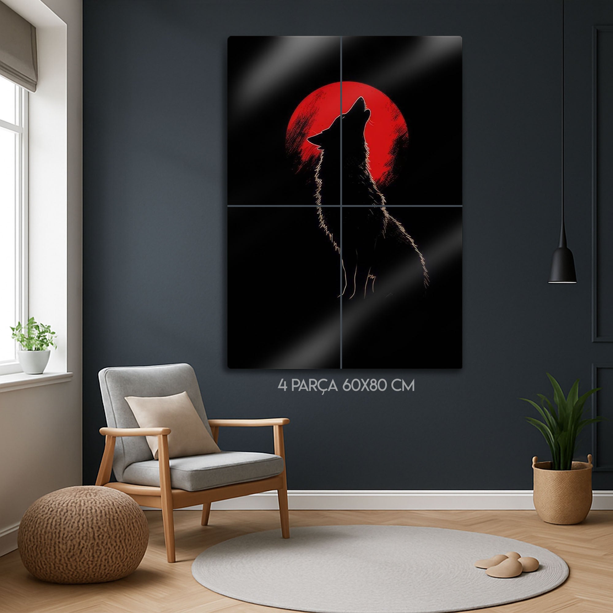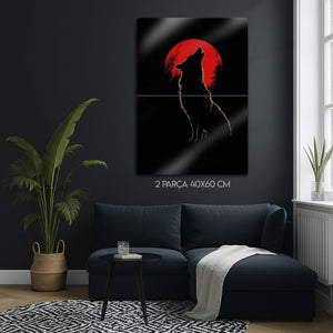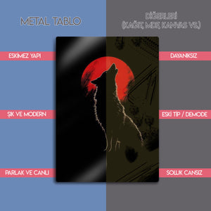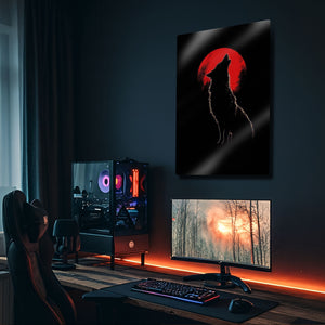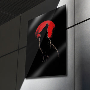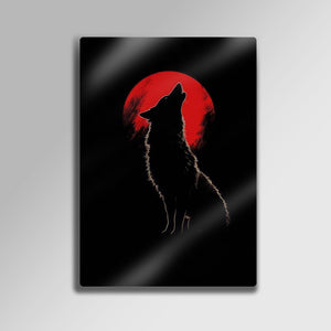 Kızıl Dolunayda Uluyan Kurt - Metal Tablo