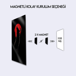 Siyahın derinliği ile kırmızının çarpıcı kontrastı, bu esere dramatik ve unutulmaz bir karakter kazandırıyor. Modern ve minimalist dekorasyon anlayışına sahip salonlar, çalışma odaları, yatak odaları veya "man cave"ler için tasarlanmış bu tablo, mekanınıza anında sofistike ve gizemli bir hava katacaktır.