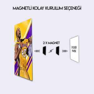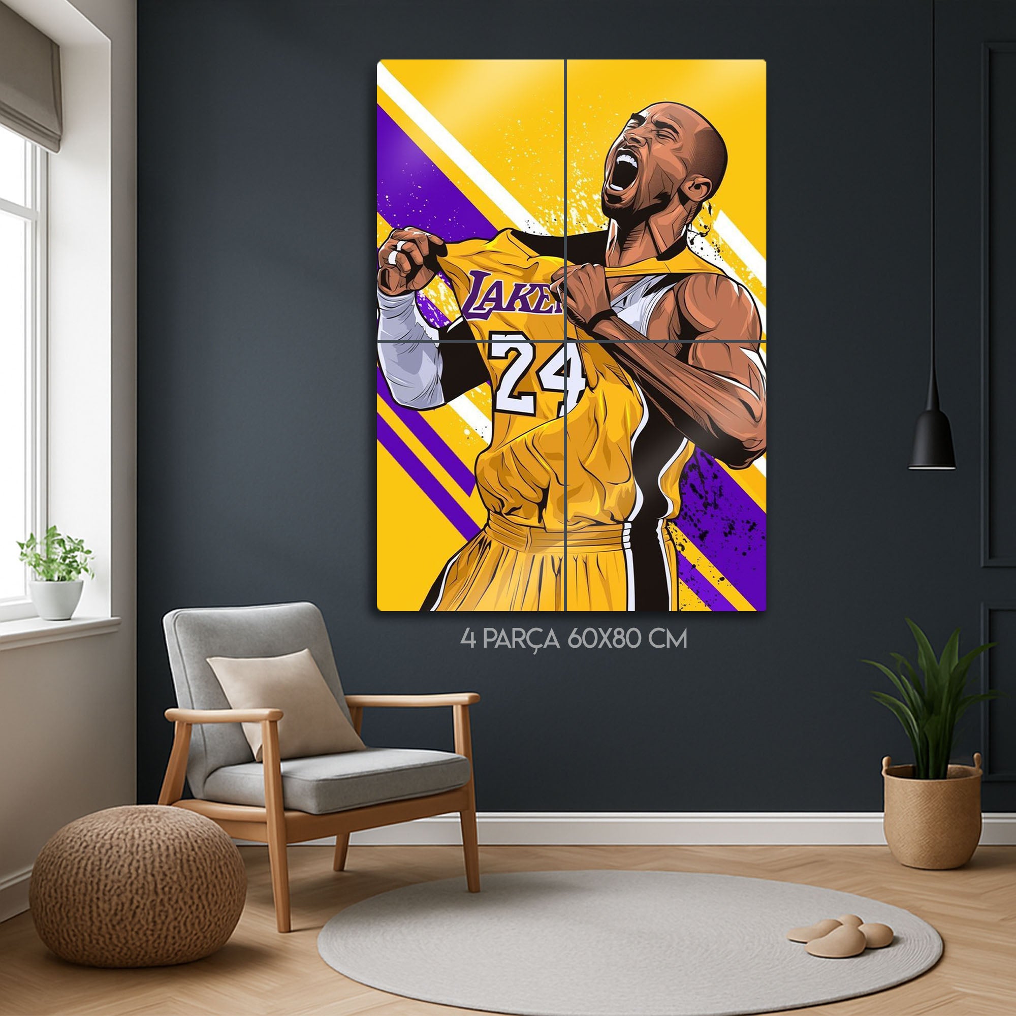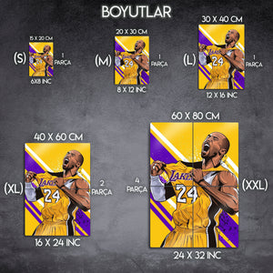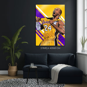 Pop art ve çizgi roman estetiğini birleştiren bu sanat eseri, Kobe'nin sahadaki o inanılmaz enerjisini ve karakterini mükemmel bir şekilde yansıtıyor. Canlı Lakers renkleri olan sarı ve morun enerjisiyle bezenmiş bu tablo, her basketbolseverin ve spor tutkununun duvarında olması gereken, ilham verici bir parçadır. Spor odası, "man cave", genç odası veya ofis gibi mekanlara anında bir şampiyonluk ruhu katacaktır.
