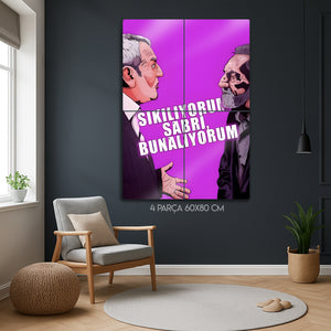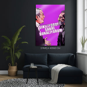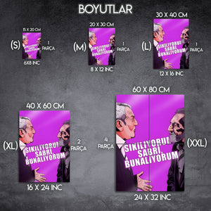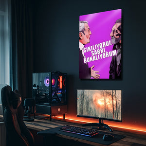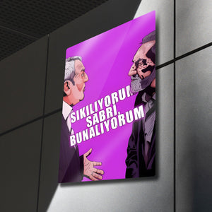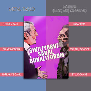 Türk televizyon tarihinin unutulmaz repliklerinden “Sıkılıyorum Sabri, Bunalıyorum” sözü bu özel metal tablo ile duvarlarınıza taşınıyor. Mizahi ve nostaljik havasıyla evinize eğlenceli bir dokunuş katar. Yüksek kaliteli metal baskı sayesinde uzun ömürlü kullanım sunan bu tablo, hem dizi repliklerini sevenler hem de farklı dekor arayanlar için ideal bir seçimdir. Oturma odası, ofis veya hediye alternatifi olarak benzersiz bir tasarımdır.
