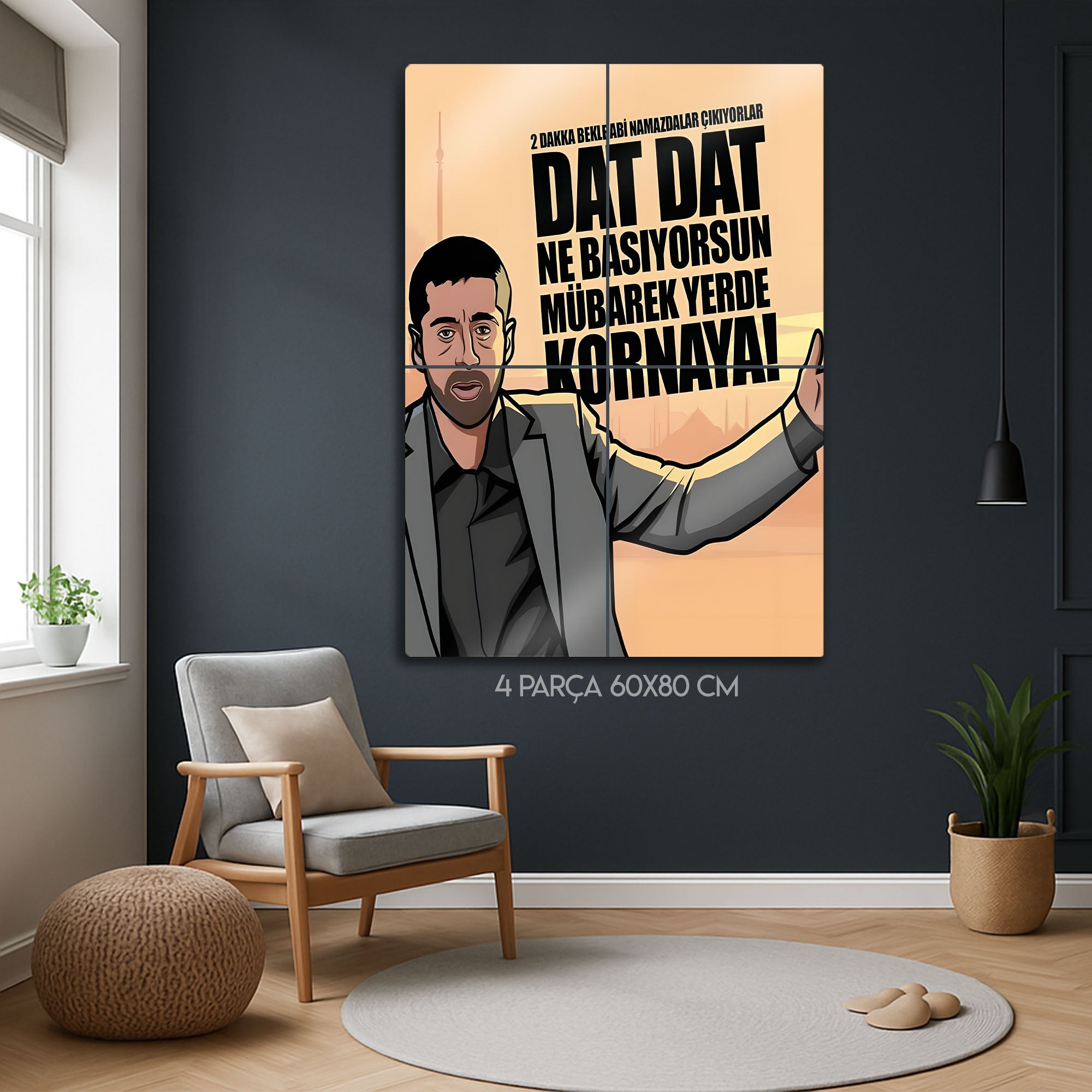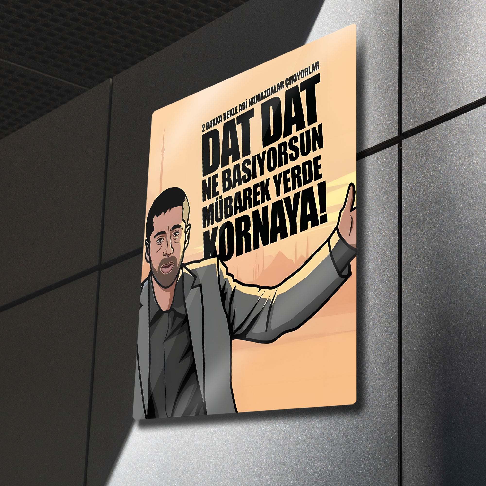 İnternet dünyasının unutulmaz anlarından birini, sanatsal bir yorumla duvarlarınıza taşıyın! "2 dakka bekle abi namazdalar çıkıyorlar. Dat dat ne basıyorsun mübarek yerde kornaya!" repliğiyle hafızalara kazınan o efsanevi an, şimdi modern bir illüstrasyonla ölümsüzleşiyor.