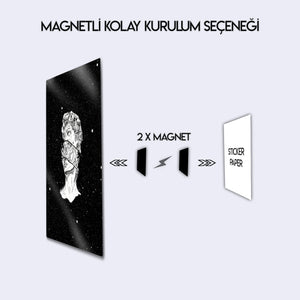 Bu eser, sadece bir sanat parodisi değil, aynı zamanda varoluş, ölümlülük ve evrenin sonsuzluğu üzerine derin bir felsefi sorgulamadır. Siyah ve beyazın dramatik kontrastı ve yıldızlarla dolu arka plan, bu esere hem rahatsız edici hem de son derece büyüleyici bir atmosfer katıyor. Bu tablo, modern yaşam alanlarına, ofislere, stüdyolara veya kütüphanelere anında bir derinlik, karakter ve entelektüel bir hava katacaktır.