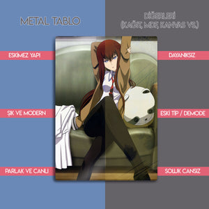 Anime ve manga tutkunları, bilim-kurgu severler ve "waifu" koleksiyonerleri için vazgeçilmez bir parça olan bu eser, yüksek kaliteli metal malzeme üzerine canlı ve animeye sadık renklerle işlenmiştir. Bu tablo, oyun odanıza, çalışma alanınıza veya modern dekorasyonlu herhangi bir mekana anında entelektüel ve havalı bir atmosfer katacaktır.