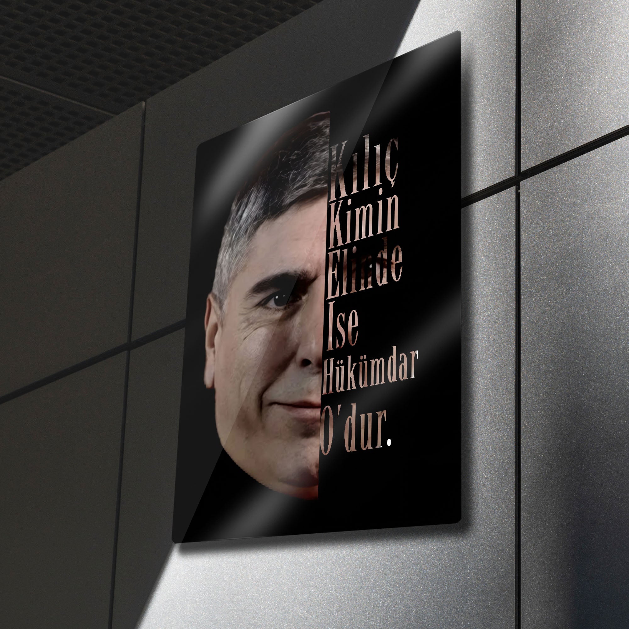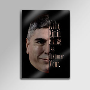 Türk dizi tarihinin efsanesi Kurtlar Vadisi'nin unutulmaz karakteri Polat Alemdar'ın ikonik duruşunu ve hafızalara kazınan sözünü duvarlarınıza taşıyın. Bu özel tasarım metal tablo, Polat Alemdar'ın karizmatik portresini, gücün felsefesini özetleyen "Kılıç Kimin Elinde İse Hükümdar O'dur." sözüyle birleştiriyor.