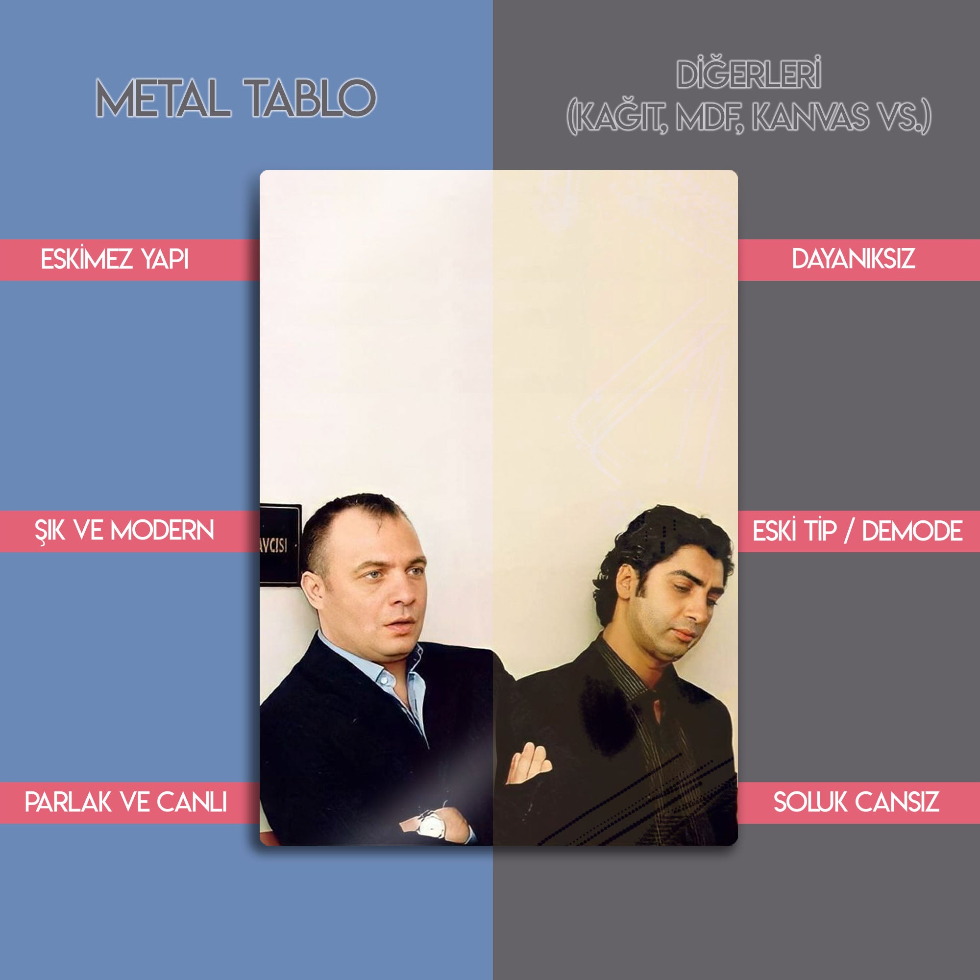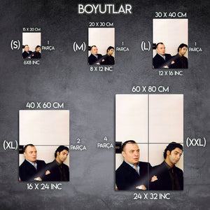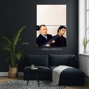 Dostluğun, sadakatin ve raconun simgesi, Türk dizi tarihinin en unutulmaz ikilisi: Polat Alemdar ve Süleyman Çakır! Bu özel metal tablo, Kurtlar Vadisi'nin efsane karakterlerinin o ikonik ve karizmatik duruşlarını, hafızalara kazınan bir sahneyle duvarlarınıza taşıyor.