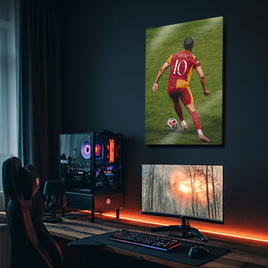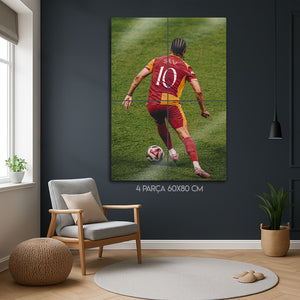 Hayaller gerçek oluyor! Dünya futbolunun en yetenekli ve en hızlı kanat oyuncularından Leroy Sané'nin, efsanevi Sarı Kırmızılı Parçalı formayla o coşku dolu anını duvarlarınıza taşıyın. Bu özel konsept tasarım, her Galatasaray taraftarının hayalini süsleyen bir anı, sanatsal bir yorumla ölümsüzleştiriyor.