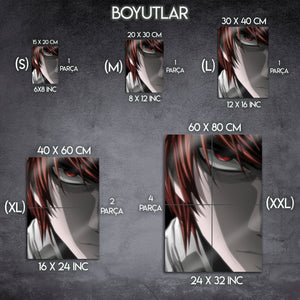Yüksek Kalite Baskı: Light'ın her detayını ve o şeytani bakışın yoğunluğunu keskin bir şekilde yansıtan premium baskı.