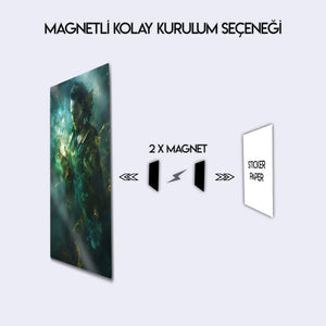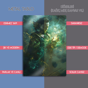 Kurnazlık Tanrısı'nın (God of Mischief) büyüleyici ve kaotik gücünü duvarlarınıza taşıyın! Bu olağanüstü metal tablo, Marvel evreninin en sevilen anti-kahramanı Loki'nin, yeşil ve altın rengi büyüsüyle çevrili o hipnotize edici anını, sanatsal bir yorumla ölümsüzleştiriyor. Tom Hiddleston'ın hayat verdiği karakterin karizması ve gücü, bu eserde tüm detaylarıyla hayat buluyor.