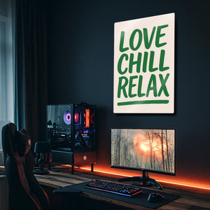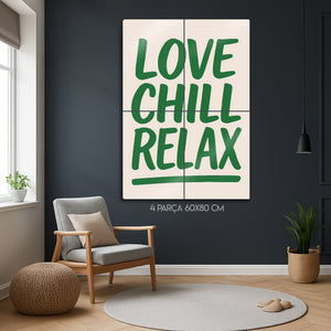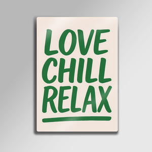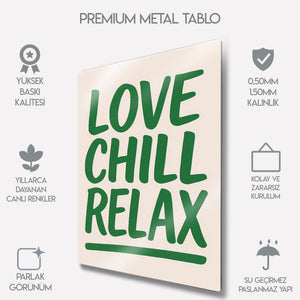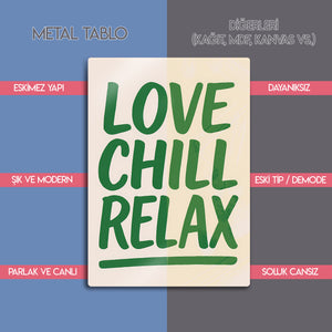 Love Chill Relax Metal Tablo – Minimalist Duvar Dekoru