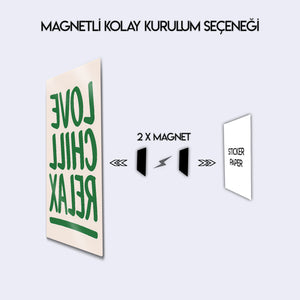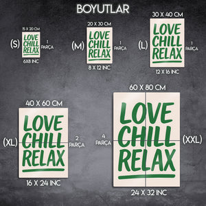Pozitif enerji ve huzuru evinize taşıyın! Bu metal tablo üzerinde yer alan “Love, Chill, Relax” yazısı, minimalist tasarımıyla hem modern hem de motive edici bir dekor sunuyor. Yüksek baskı kalitesi sayesinde uzun ömürlüdür ve cafe işletmeleri, salon, yatak odası, ofis ya da hediye olarak mükemmel bir seçimdir.