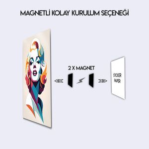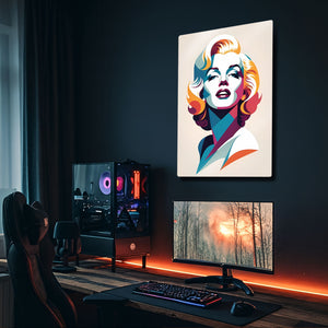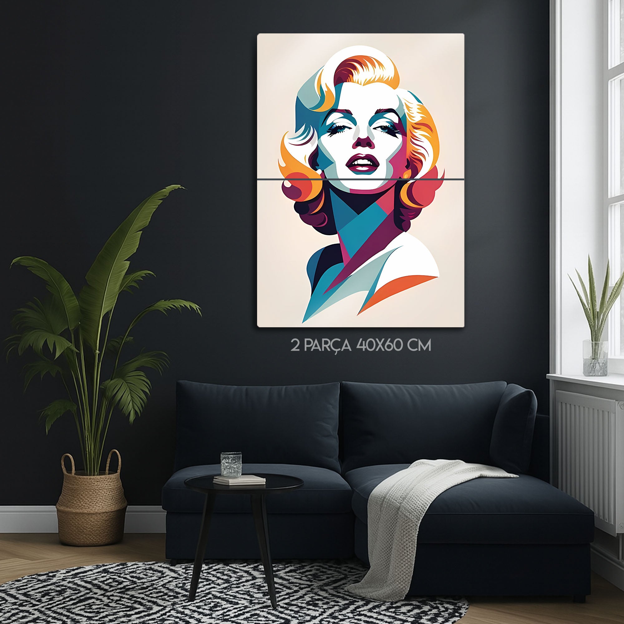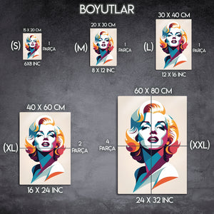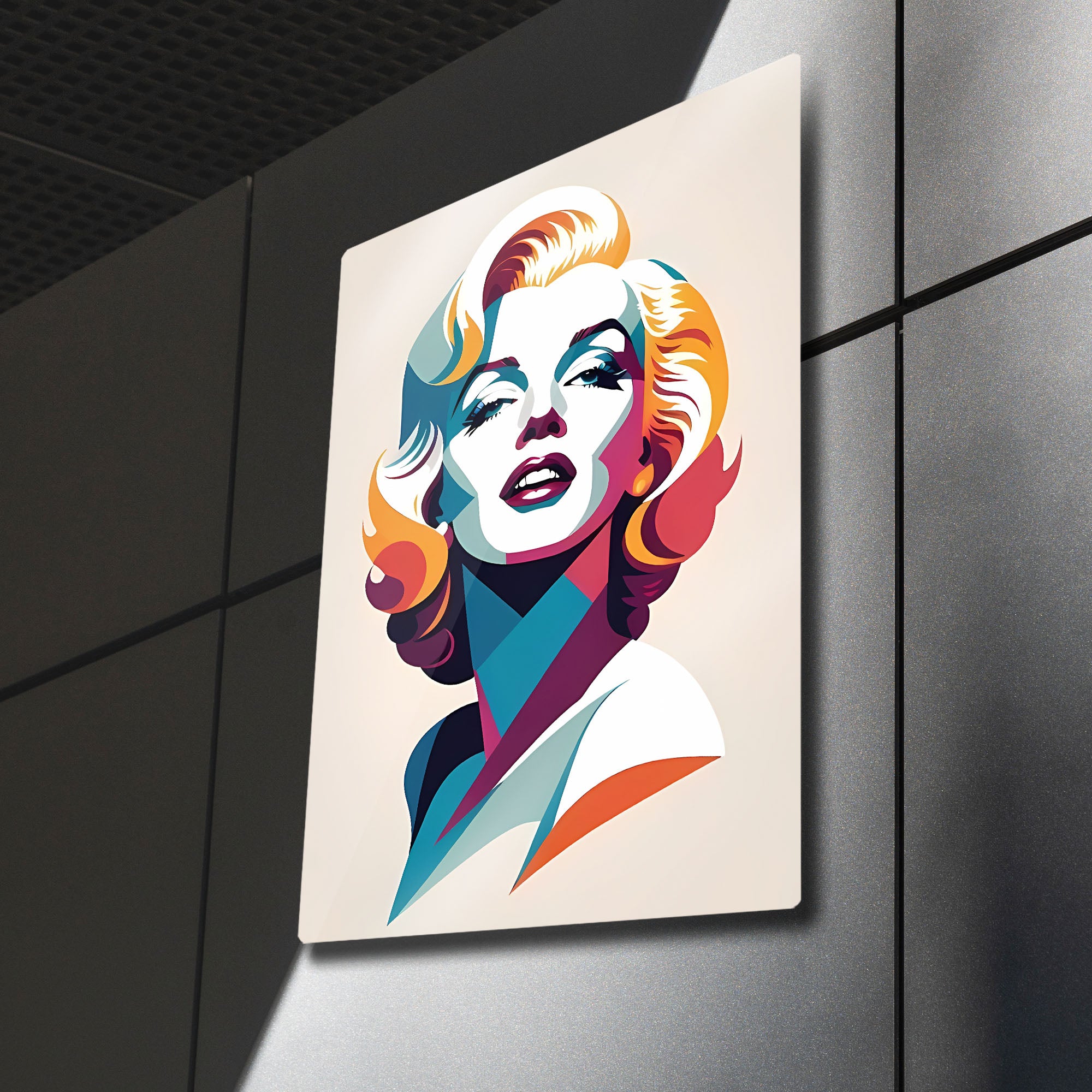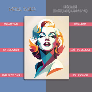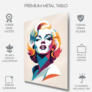 Hollywood'un altın çağının unutulmaz yıldızı, popüler kültürün ölümsüz ikonu Marilyn Monroe'nun zamansız güzelliğini, modern bir sanat yorumuyla duvarlarınıza taşıyın! Bu olağanüstü metal tablo, Marilyn'in ikonik portresini, canlı renk blokları ve keskin hatlardan oluşan dinamik bir vektörel pop art stiliyle yeniden yorumluyor.