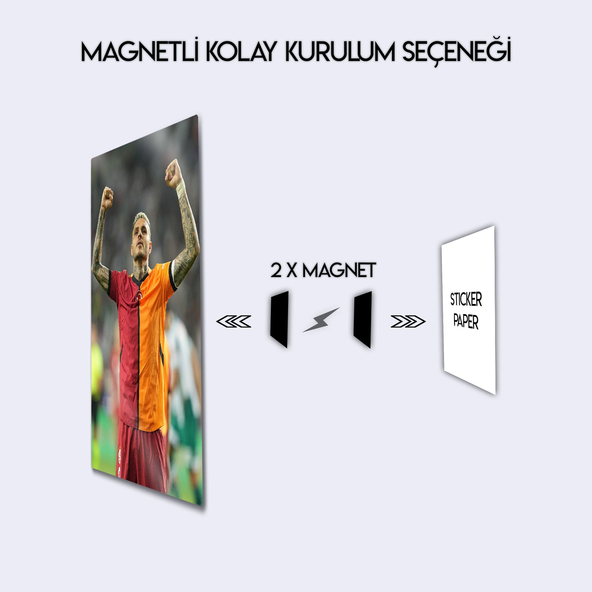Genç odaları, spor odaları, salonlar veya ofisler için mükemmel bir dekorasyon parçası olan bu metal tablo, aynı zamanda tüm Galatasaraylı sevdikleriniz için eşsiz bir hediye alternatifidir. Takımınıza olan sevginizi ve Icardi'ye olan hayranlığınızı duvarlarınıza taşımak için Dekorhane kalitesiyle sunulan bu özel ürünü kaçırmayın!