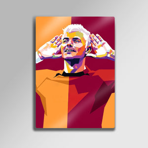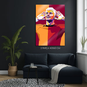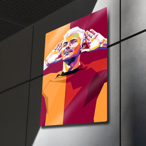 Yüksek kaliteli metal yüzeye uygulanan canlı ve parlak baskı, bu sanat eserinin her detayını keskin bir şekilde ortaya çıkarır. WPAP (Wedha's Pop Art Portrait) tarzındaki bu modern tasarım, hem bir futbol ikonunu onurlandırıyor hem de ev veya ofis dekorasyonunuza avangart bir dokunuş ekliyor.
