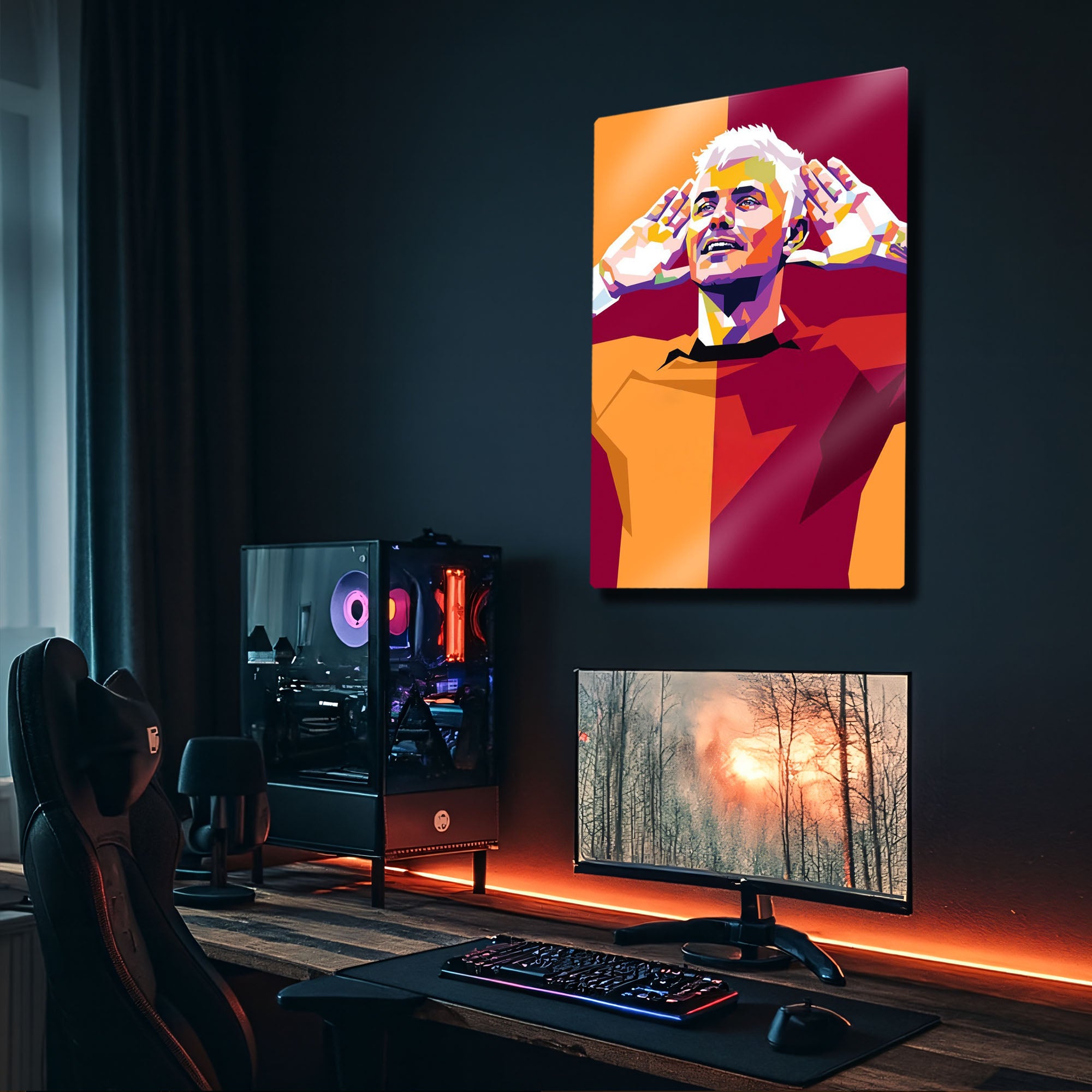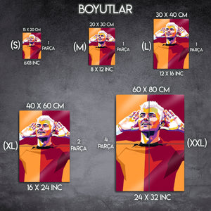 Galatasaray'ın yıldız golcüsü Mauro Icardi'nin tribünleri coşturan ikonik gol sevinci, şimdi de modern Pop Art akımının canlı renkleriyle buluşuyor. Bu eşsiz metal tablo, Icardi'nin o unutulmaz anını geometrik şekiller ve cesur renk paletiyle yeniden yorumlayarak mekanınıza dinamik ve sanatsal bir enerji katıyor.