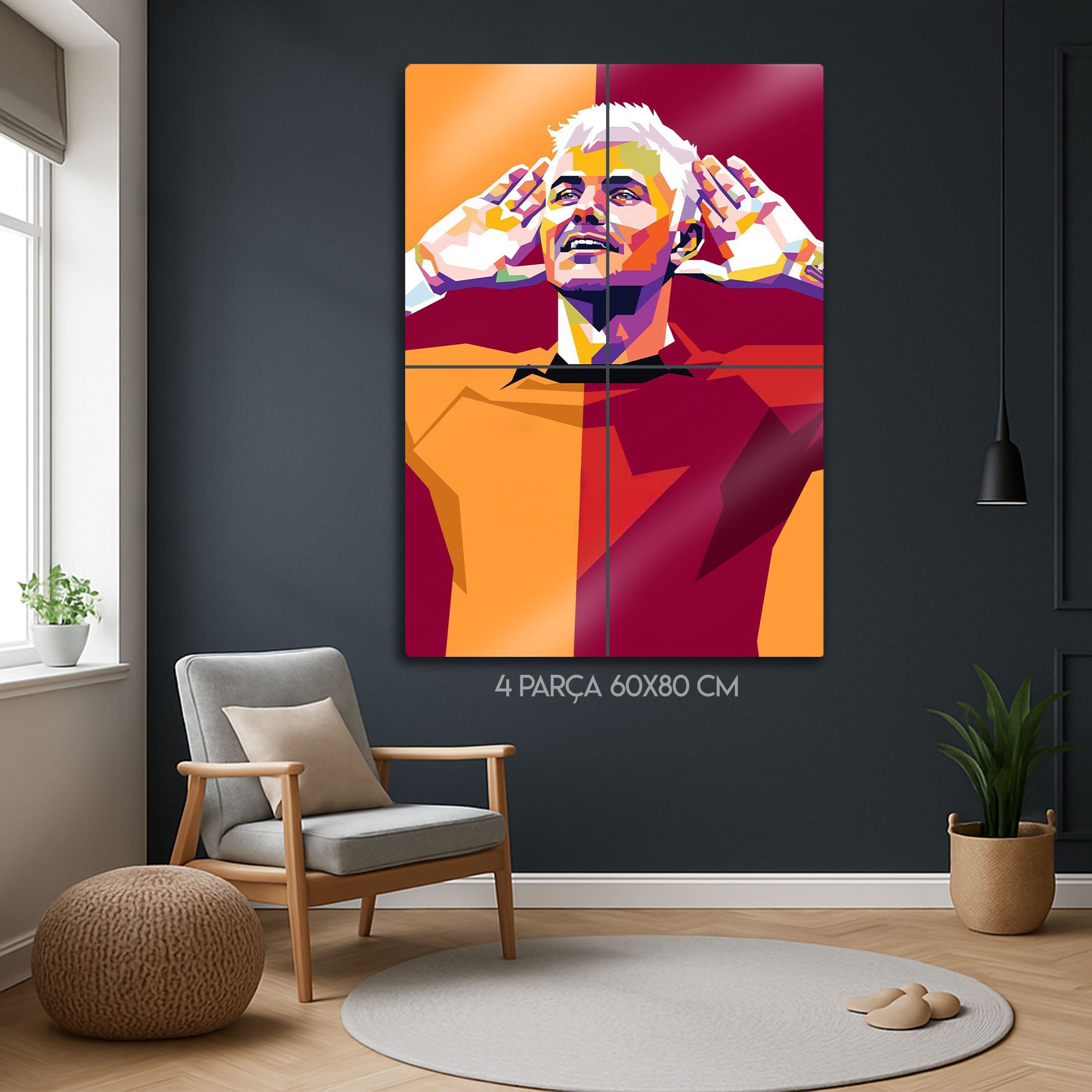 Spor ve sanatı bir araya getiren bu metal tablo, özellikle genç odaları, oyun odaları, modern salonlar ve "fan cave"ler için vazgeçilmez bir dekorasyon ögesi olacaktır. Galatasaray'a ve Icardi'ye olan tutkunuzu en stil sahibi şekilde göstermek veya sevdiklerinize unutulmaz bir hediye vermek için Dekorhane kalitesiyle sunulan bu Pop Art tabloyu tercih edebilirsiniz.
