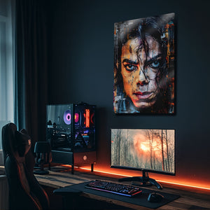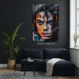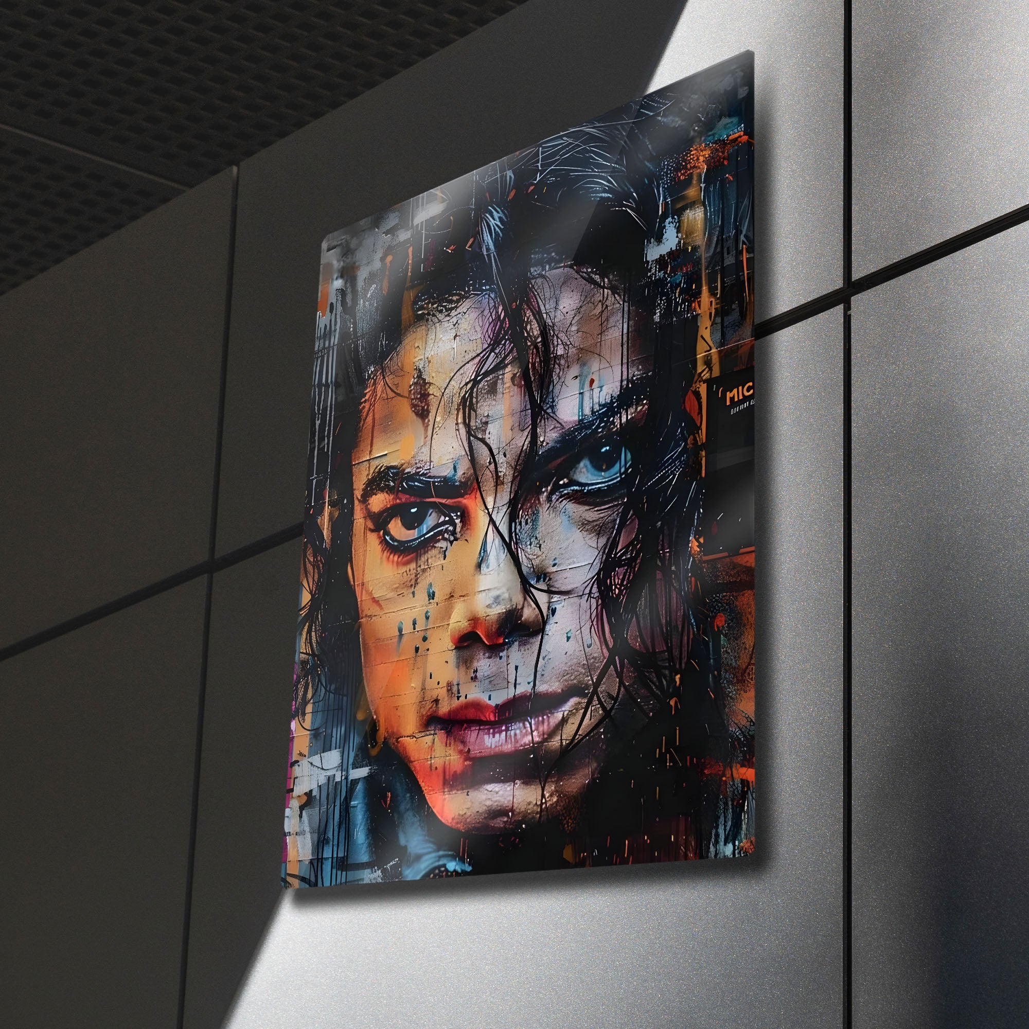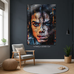 Popun Kralı'nın ölümsüz ruhunu ve sanatsal dehasını duvarlarınıza taşıyın! Bu olağanüstü metal tablo, tüm zamanların en büyük sanatçılarından Michael Jackson'ın ikonik portresini, dinamik ve katmanlı bir sokak sanatı (street art) ve graffiti estetiğiyle yeniden yorumluyor.