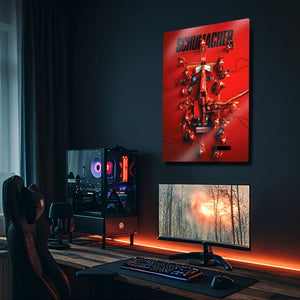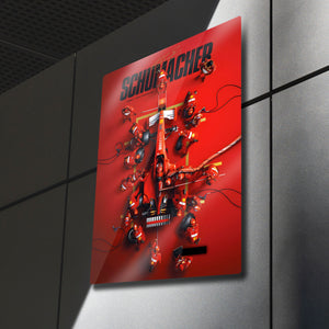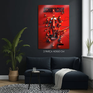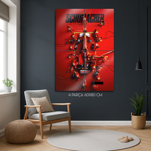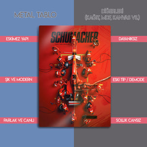 Formula 1 tarihinin en büyük efsanesi, 7 kez Dünya Şampiyonu Michael Schumacher'in ve Scuderia Ferrari'nin o durdurulamaz hakimiyetini duvarlarınıza taşıyın! Bu olağanüstü metal tablo, Schumacher'in 2000 yılındaki şampiyonluk aracını ve o meşhur Ferrari pit ekibinin kusursuz senkronizasyonunu, sanatsal bir kuş bakışı kompozisyonuyla ölümsüzleştiriyor.