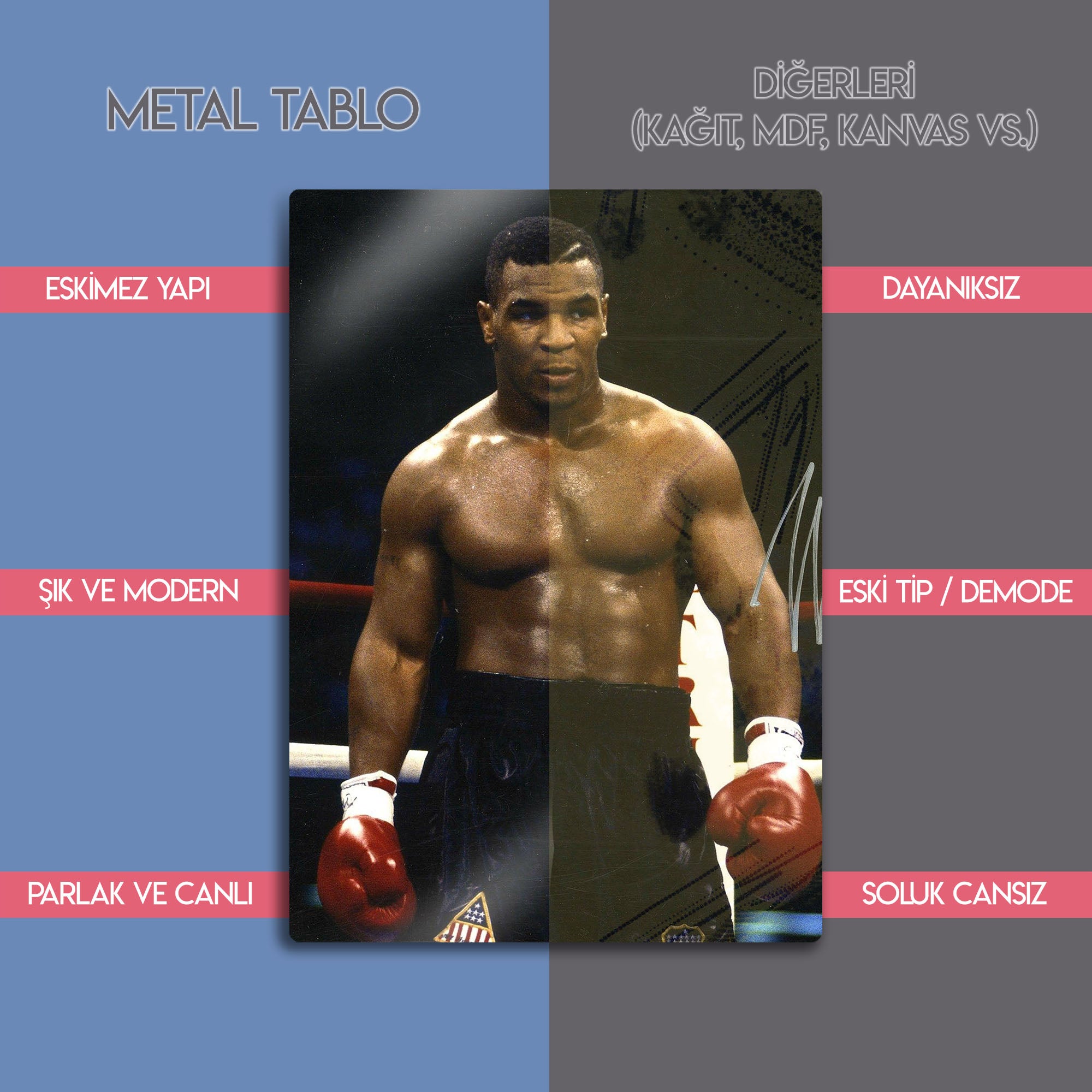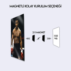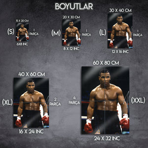 Bu eser, sadece bir spor fotoğrafı değil, aynı zamanda ham gücün, disiplinin ve ringdeki bir gladyatörün sarsılmaz iradesinin bir simgesidir. Yüksek kaliteli metal malzeme üzerine basılan bu fotoğraf, o anın her bir detayını, Tyson'ın odaklanmış bakışını ve o dönemin atmosferini canlı bir şekilde yansıtır. Spor odaları, "man cave"ler, ofisler veya modern yaşam alanlarına anında bir güç, karizma ve şampiyonluk ruhu katacaktır.
