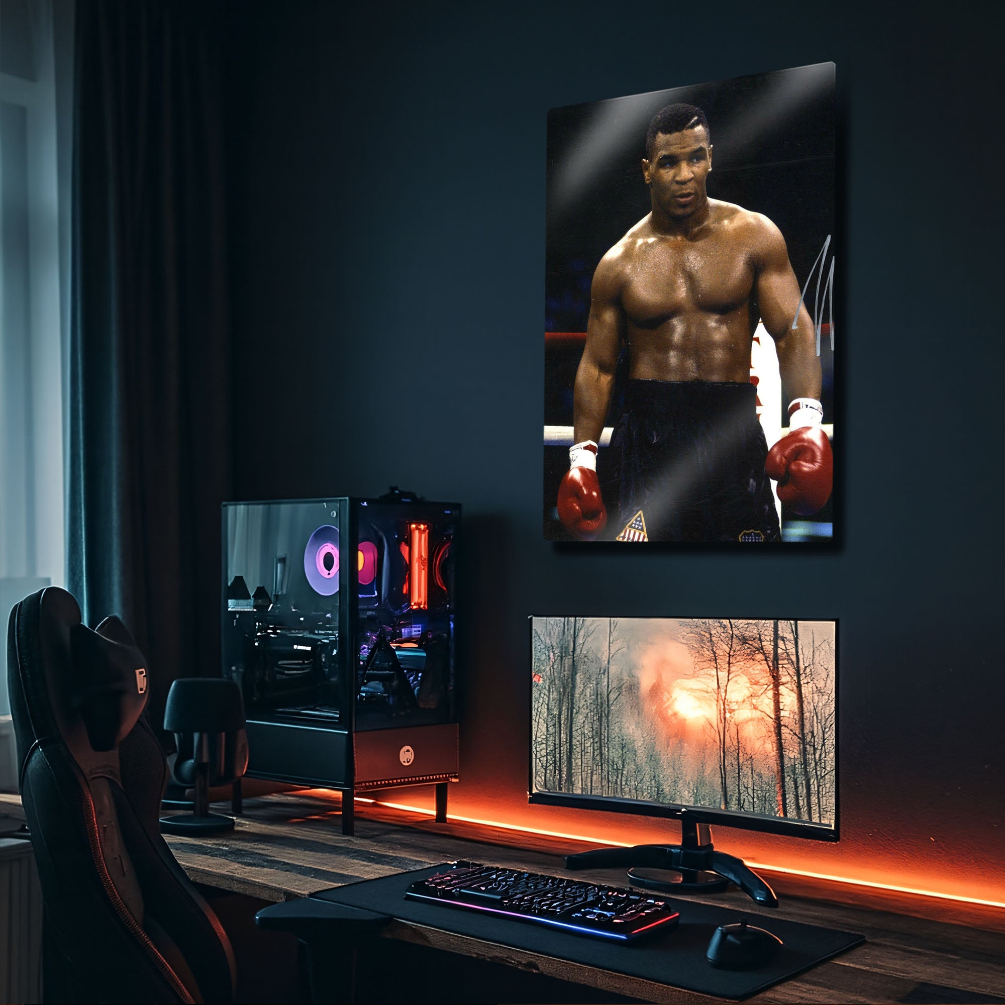 ''Herkesin suratına bir yumruk yiyene kadar bir planı vardır.'' Boks tarihinin en yıkıcı gücü, en genç ağır siklet şampiyonu, "Iron" Mike Tyson'ın o gençlik ateşini ve ringdeki korkutucu aurasını duvarlarınıza taşıyın. Bu olağanüstü metal tablo, Tyson'ın zirvedeki yıllarından, o ikonik ve kararlı anlarından birini, imzasıyla birlikte ölümsüzleştiriyor.