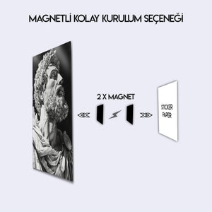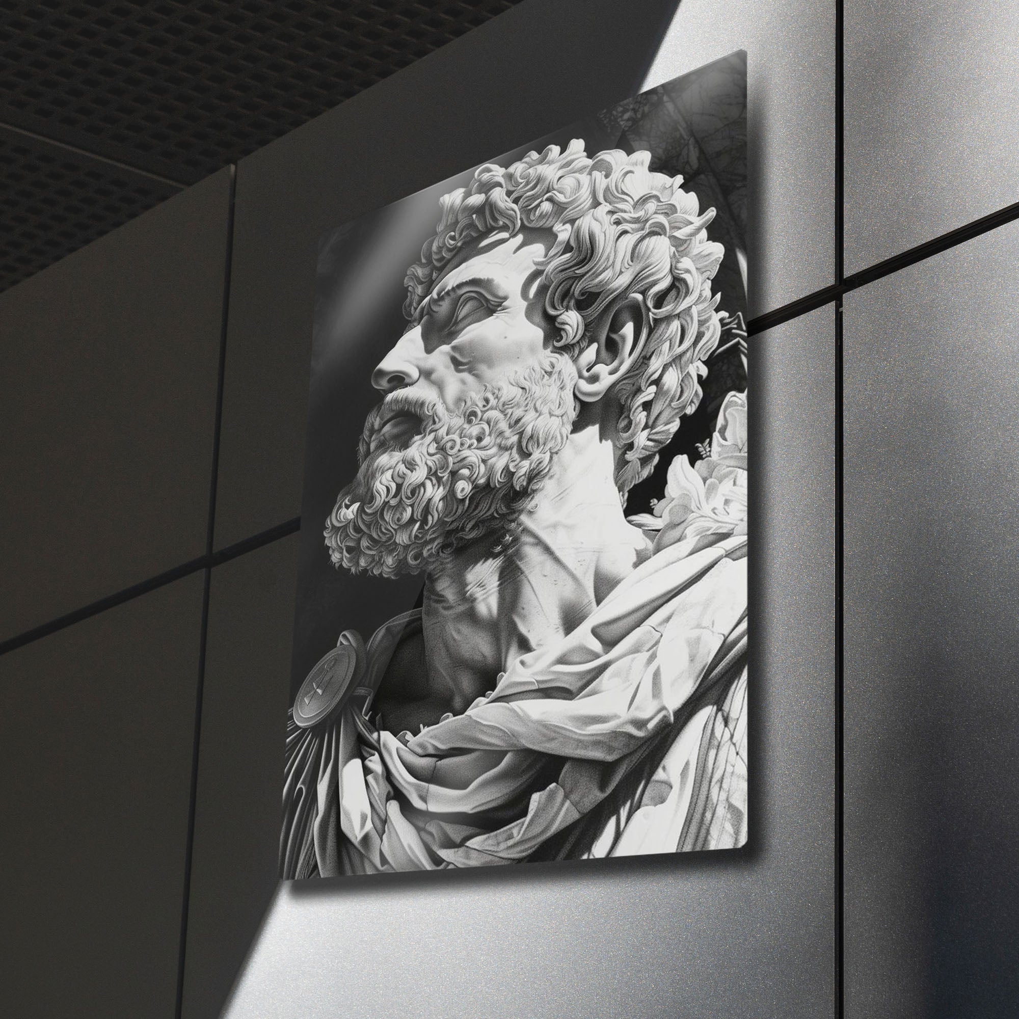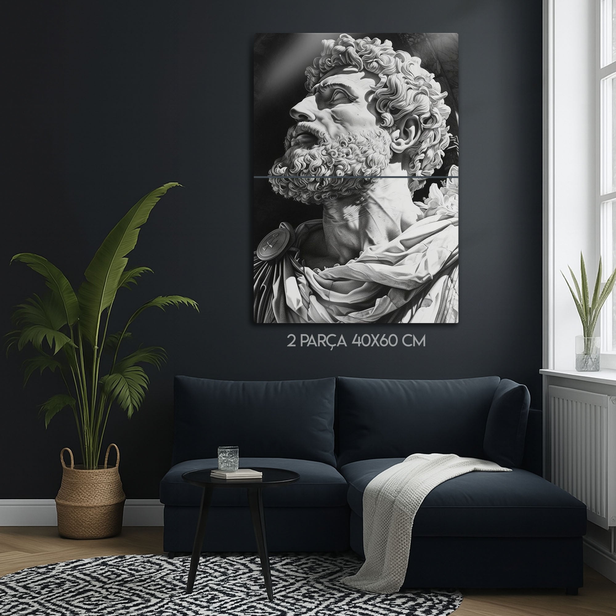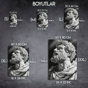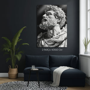 Bu eser, sadece tarihi bir figürün portresi değil, aynı zamanda bilgeliğin, öz denetimin, aklın ve Stoacı felsefenin zamana meydan okuyan gücünün bir simgesidir. Siyah beyazın dramatik ve asil kontrastı, bu güçlü portrenin her bir detayını, ışık ve gölge oyunlarını mükemmel bir şekilde vurgular. Ofisler, "man cave"ler, kütüphaneler, çalışma alanları veya modern yaşam alanlarına anında bir ağırlık, bilgelik ve entelektüel bir hava katacaktır.